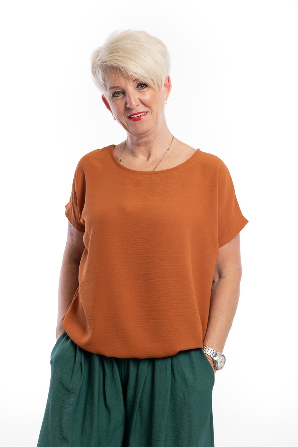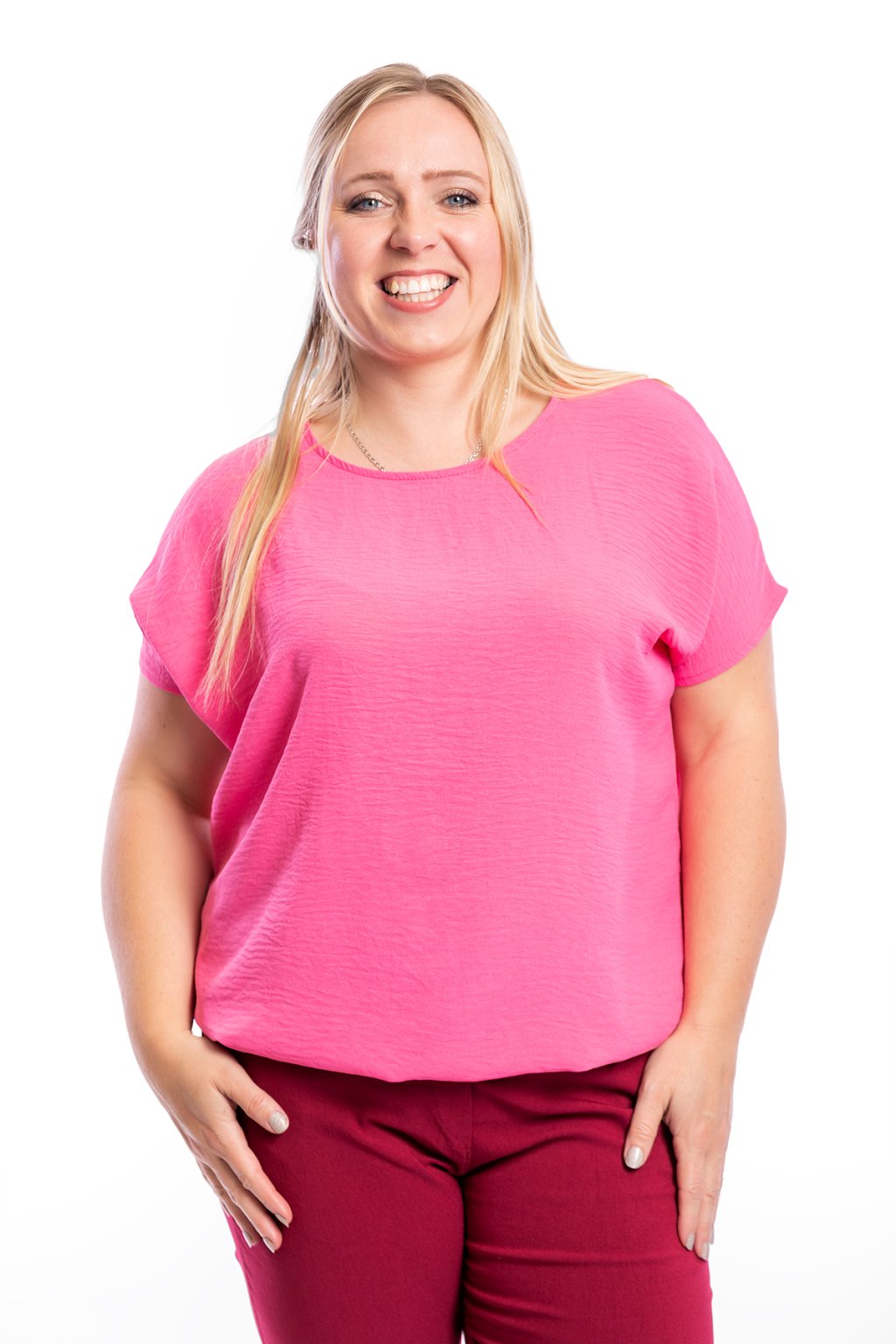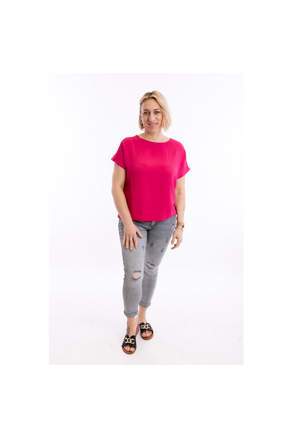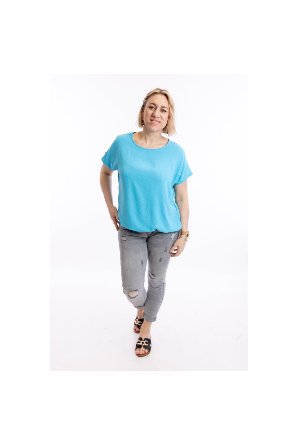 Dámské tričko VIOLETA se hodí pro slavnostní i všední příležitosti. Díky zakončení spodního lemu gumičkou schová bříško. Rukávy trička jsou krátké a mají volnější střih. Nejlépe sedne velikostem M až XL. Vybírat můžeš z 15 barev.