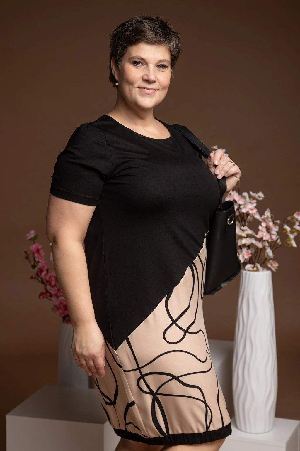 Dámské elegantní šaty FIRE ti perfektně oživí celý tvůj outfit. U krku mají výstřih, který je střižený do kulata. Jsou ideální i do teplejších dní a to díky svým krátkým rukávům. Sukně je poté zdobená abstraktními a nevšedními motivy. Tyto elegantní šaty ti vykouzlí neodolatelnou siluetu a jsou velice pohodlné. Mírně pruží po celé své délce a spodní lem do gumy. V naší nabídce jsou od velikosti 42 - 50 a na výběr máš z variant