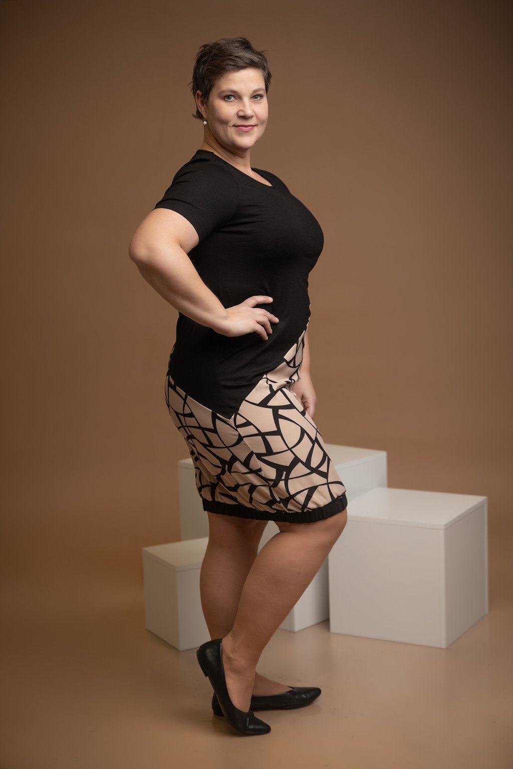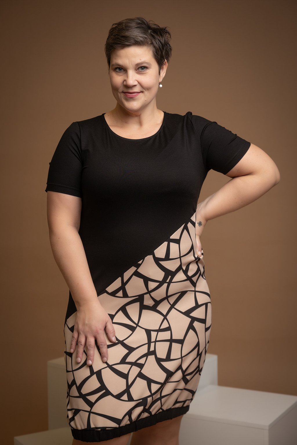 Dámské elegantní šaty FIRE ti perfektně oživí celý tvůj outfit. U krku mají výstřih, který je střižený do kulata. Jsou ideální i do teplejších dní a to díky svým krátkým rukávům. Sukně je poté zdobená abstraktními a nevšedními motivy. Tyto elegantní šaty ti vykouzlí neodolatelnou siluetu a jsou velice pohodlné. Mírně pruží po celé své délce a spodní lem do gumy. V naší nabídce jsou od velikosti 42 - 50 a na výběr máš z variant.
