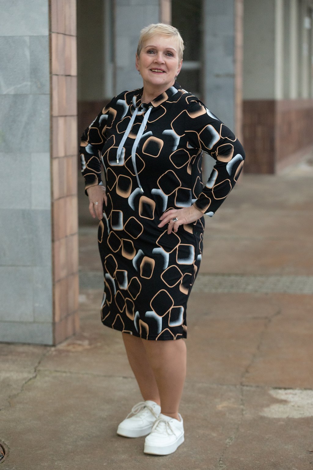 Naše vzorované šaty POLI jsou ideální kousek i na denní nošení. Obzvláštní tvůj den a navíc v nich zazáříš. Šaty jsou vzorované po celé své délce a to nevídanými motivy čtverců. Šaty mají delší rukávy k loktům a volný střih. U krku jsou zdobené nenápadným lemem, který je doplněn tkaničkami. Spodní díl je na přední i zadní straně střižen do kulata a po stranách má decentní rozparky. Po bocích tě zajisté potěší i kapsy, které uvítáš s otevřenou náručí. Dostupné jsou v naší nabídce od velikosti 42 až do 52 a vybrat si můžeš z neokoukaných vzorů.
