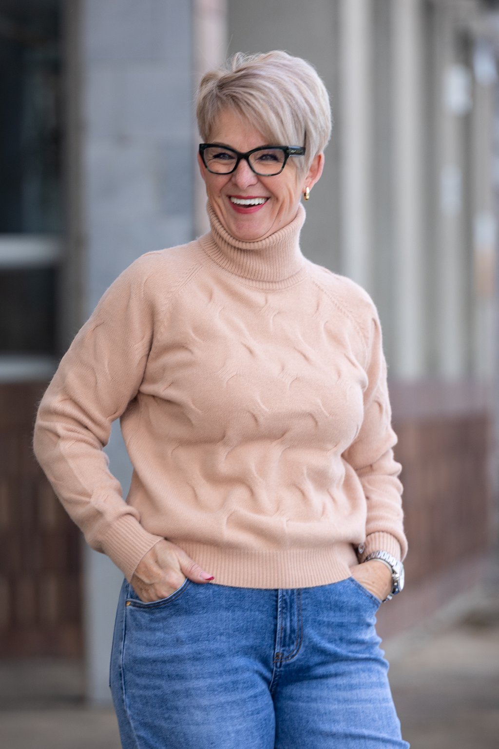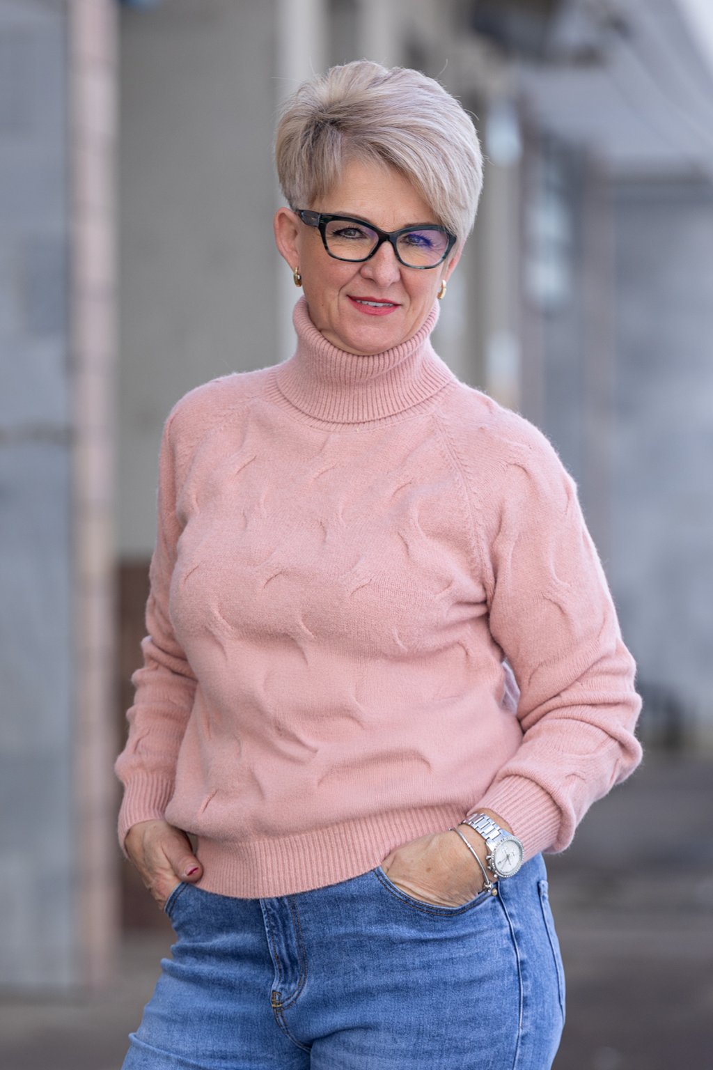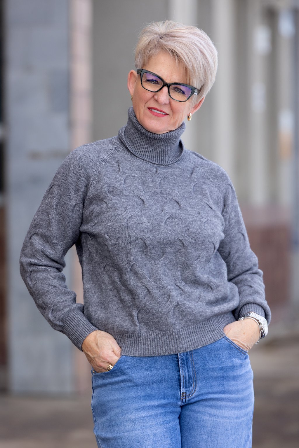Dámský svetr s rolákem PAULINE s jedinečným pleteným vzorem se okamžitě stane tvým oblíbeným parťákem a to klidně i na běžné každodenní nošení