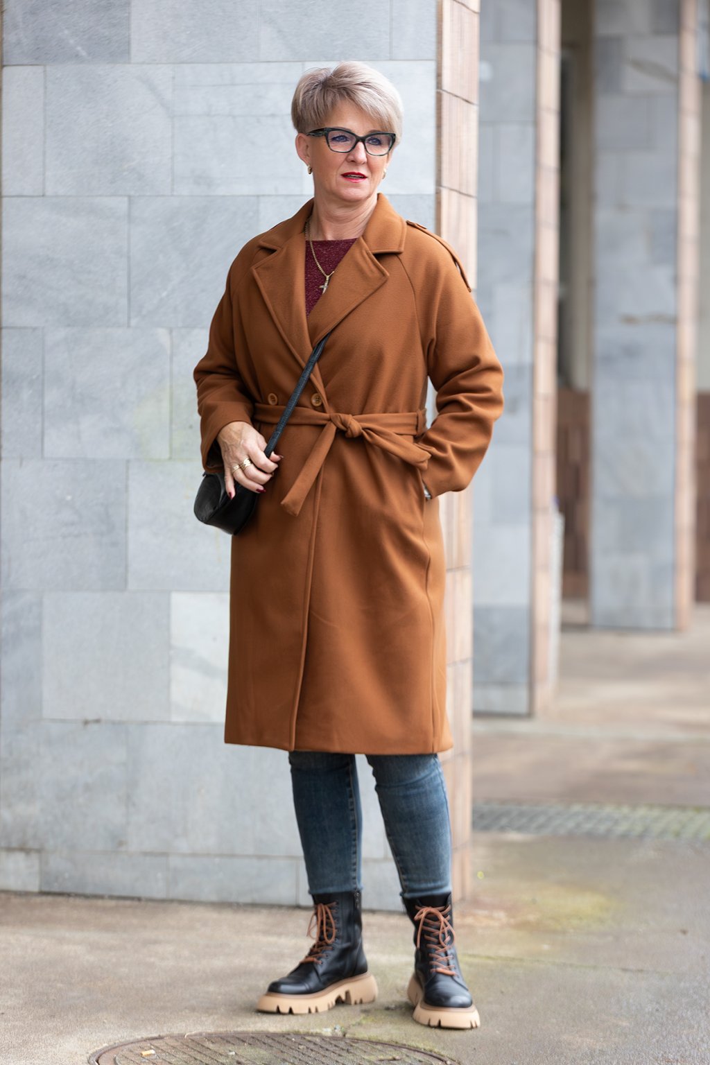 Tip od Holek: Perfektně se pod kabátem bude vyjímat náš svetřík a pružné džíny.