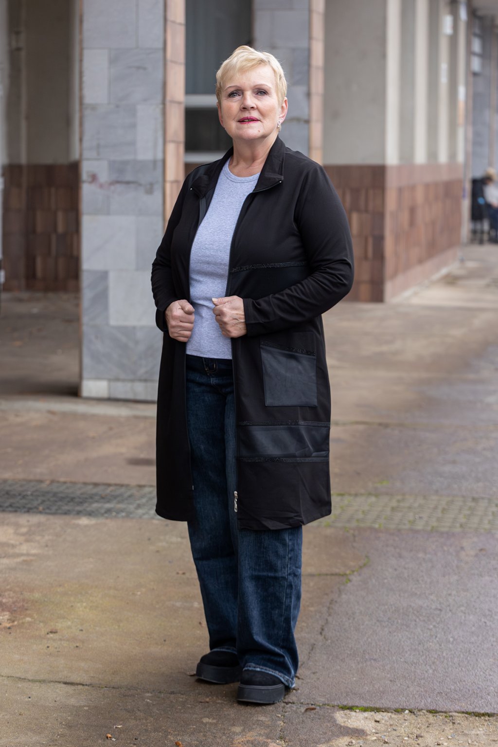 Dámský kardigan SLIDE je ideální svršek pokud se chceš cítit pohodlně a vypadat šik. Kardigan zapínání na zip a vypadá velice stylově i rozepnutý. Má dlouhé rukávy a krásně splývá na postavě. Po stranách má kardigan kapsy. Neutrální černá barva doplněná lesklými aplikacemi látky a lemováním s třpytivými kamínky. Dodá každému tvému outfitu šmrnc a lesk a každý den díky tomuto kousku bude naprosto jedinečný. Má ideální délku ke kolenům a je z hebkého a velice příjemného materiálu. Nejlépe sedí na postavu s velikostí 44- 50.