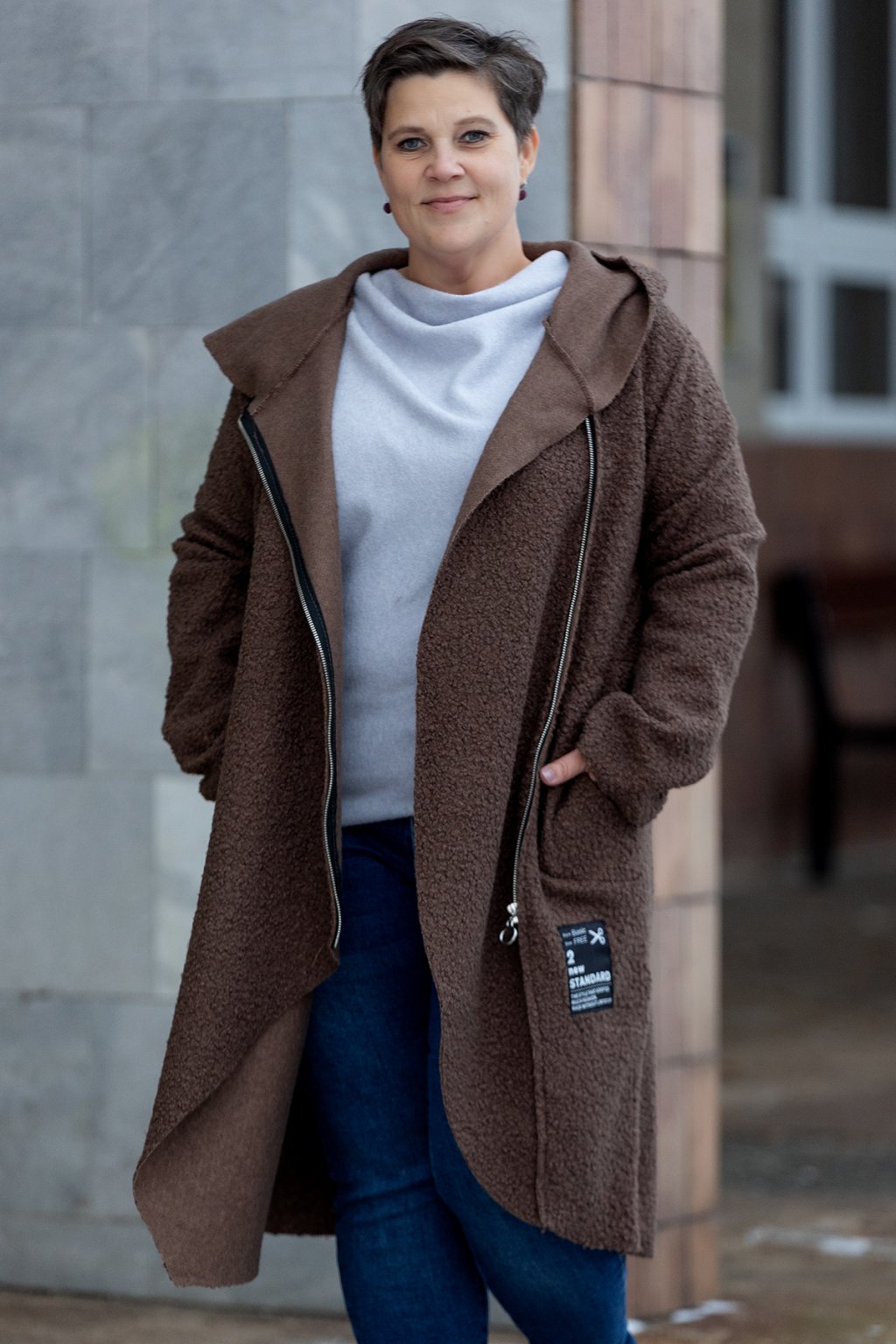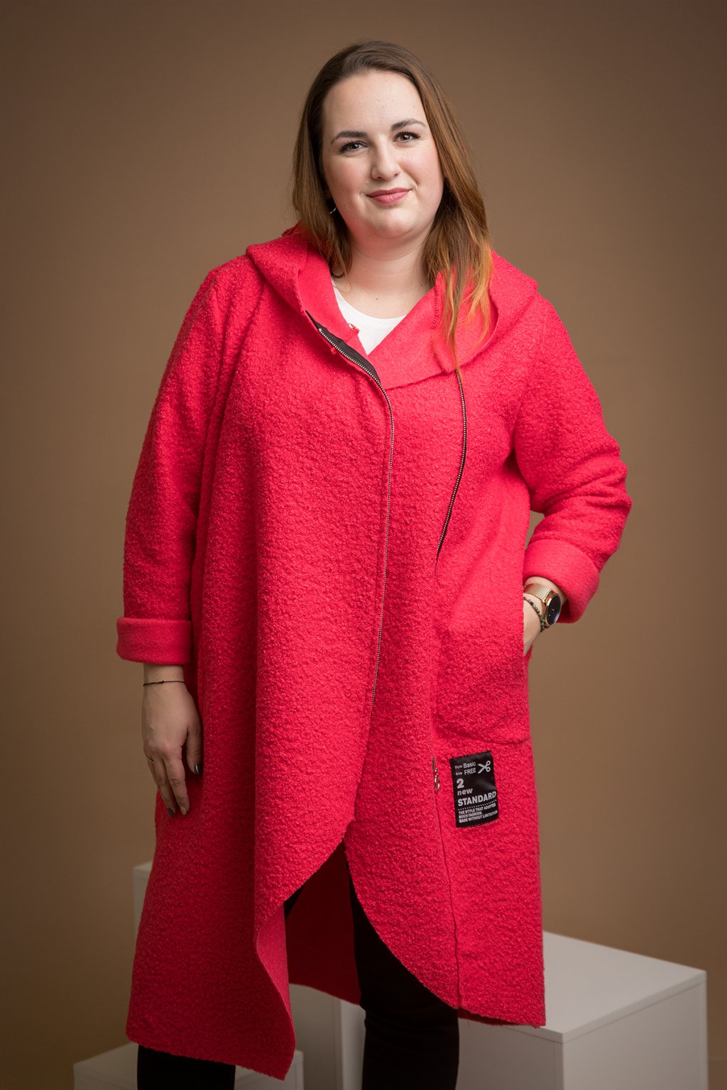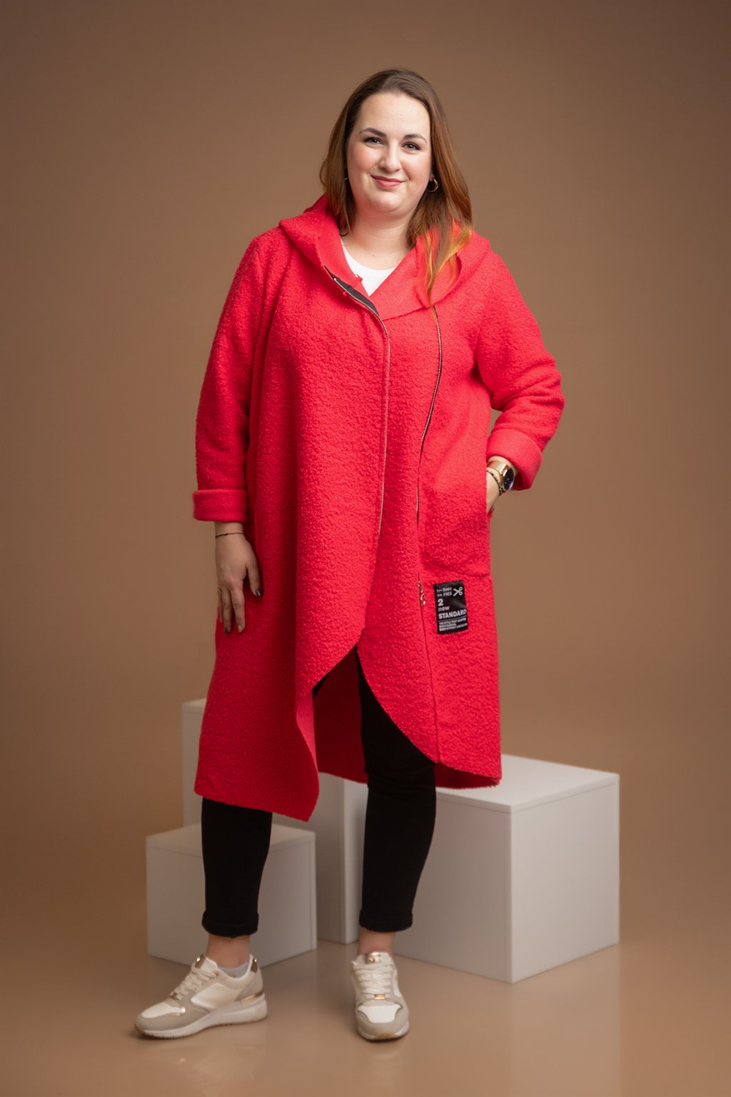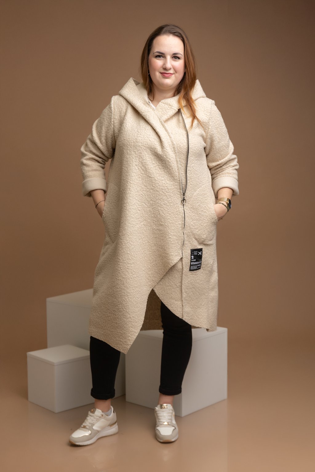 Dámský lehký kabát GRETA se pyšní úžasně pohodlným a originálním materiálem, který na pohled nápadně připomíná jemnou ovčí vlnu. Zip je umístěný na straně a lehce šikmo, což kousku jen přidává šmrnc. Spodní díl je krásně vykrojený a po bocích můžeme najít kapsičky střižené do kulata. Kabátek má u krku samozřejmě kapuci, která tě ochrání před nepřízní počasí. Greta je ideální přechodový kousek, když se mírně ochladí. Kabát nejlépe sedne ženám s postavou XL-3XL. Můžeš si u nás vybrat z několika skvělých barev tu svou oblíbenou.