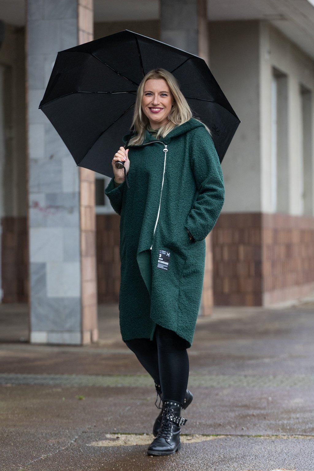 Dámský lehký kabát GRETA se pyšní úžasně pohodlným a originálním materiálem, který na pohled nápadně připomíná jemnou ovčí vlnu. Zip je umístěný na straně a lehce šikmo, což kousku jen přidává šmrnc. Spodní díl je krásně vykrojený a po bocích můžeme najít kapsičky střižené do kulata. Kabátek má u krku samozřejmě kapuci, která tě ochrání před nepřízní počasí. Greta je ideální přechodový kousek, když se mírně ochladí. Kabát nejlépe sedne ženám s postavou XL-3XL. Můžeš si u nás vybrat z několika skvělých barev tu svou oblíbenou.