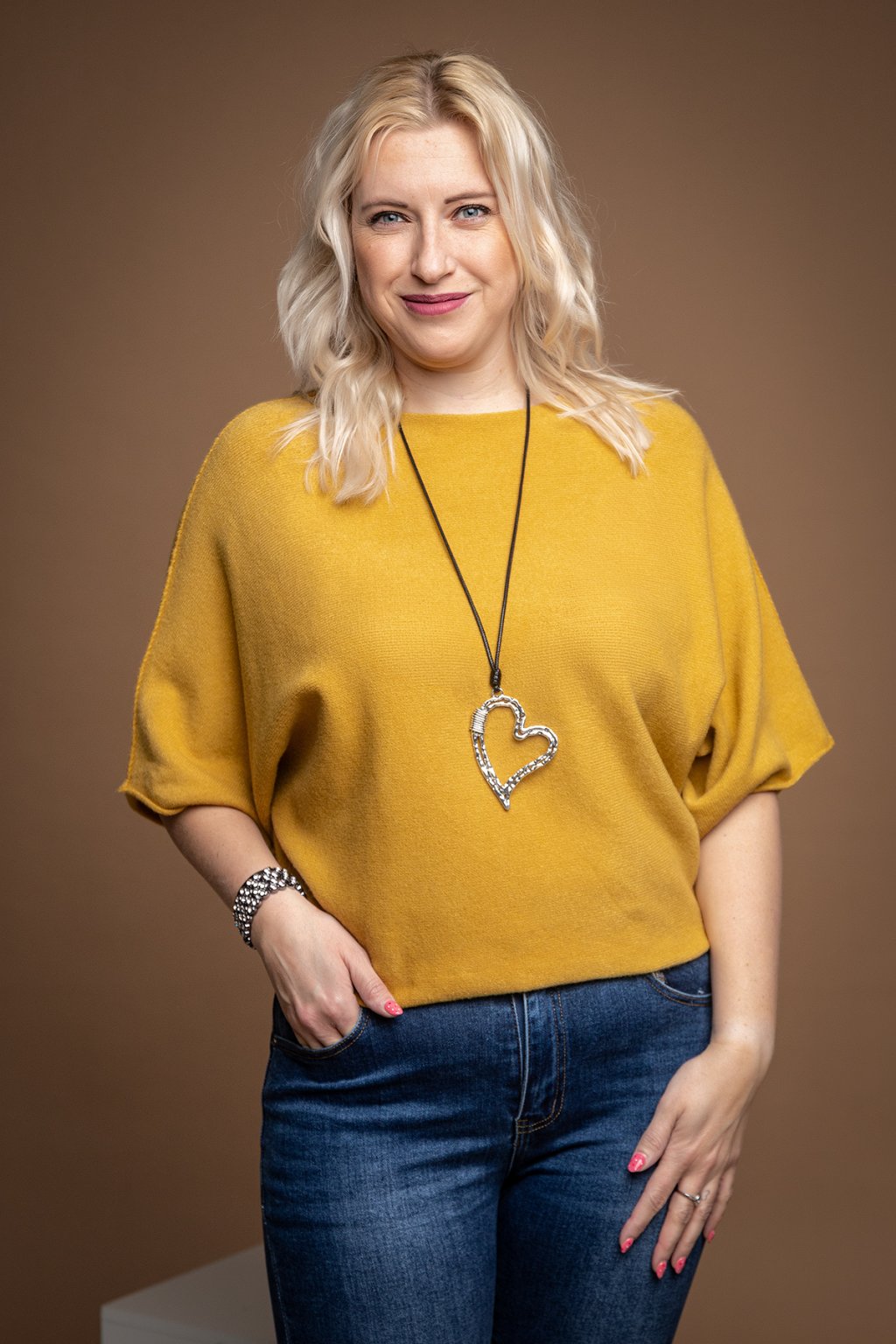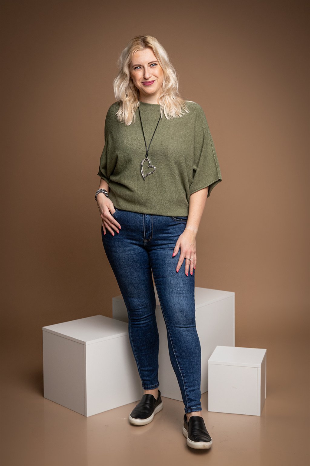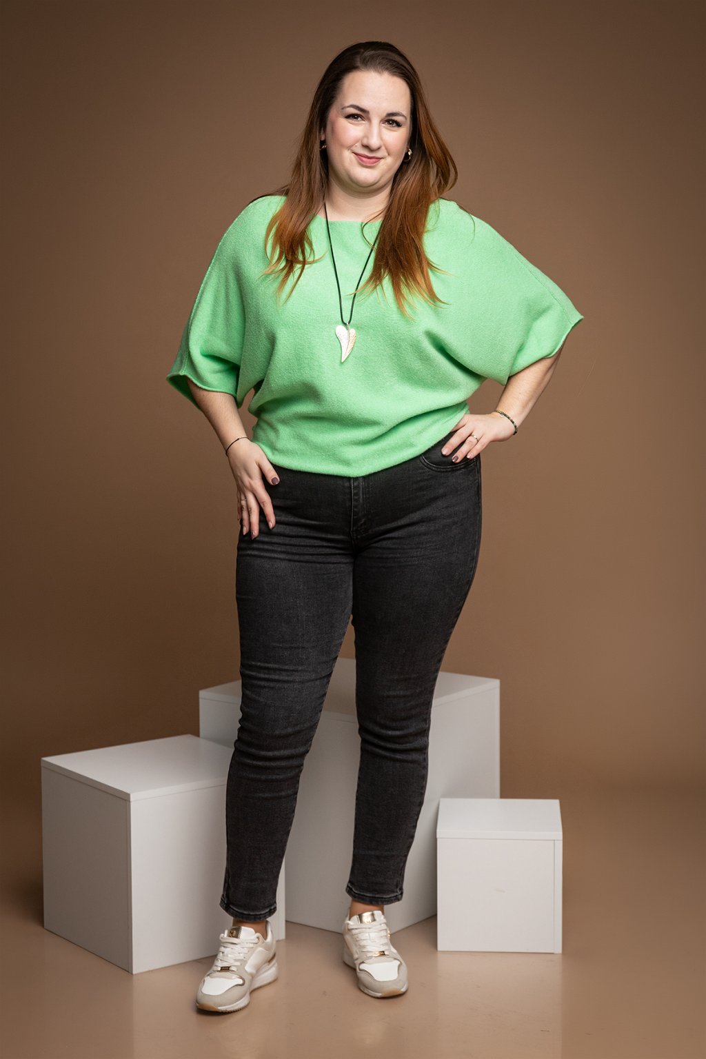 Dámský svetr BRIDGET je naprosto famózní a neodolatelný kousek. Svetřík má volný střih a nechybí mu ani netopýří rukávy. Svým střihem je tento kousek velice šik a dodá každému tvému outfitu šmrnc. U krku má lodičkový výstřih a volný spodní lem, který vypadá skvěle i zakasaný. Krásně pruží a přizpůsobí se tvé postavě. Tento oversize kousek se hodí naprosto ke všemu a je velice příjemný na těle. V naší nabídce jej najdeš v několika veselých barvách a nejlépe ti bude sedět pokud nosíš velikost M-2XL.