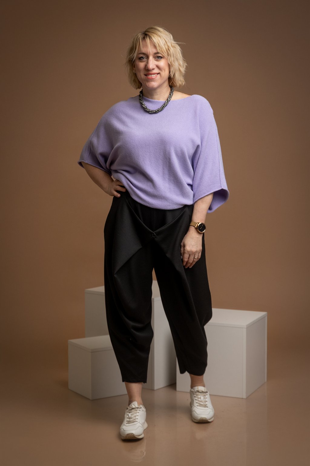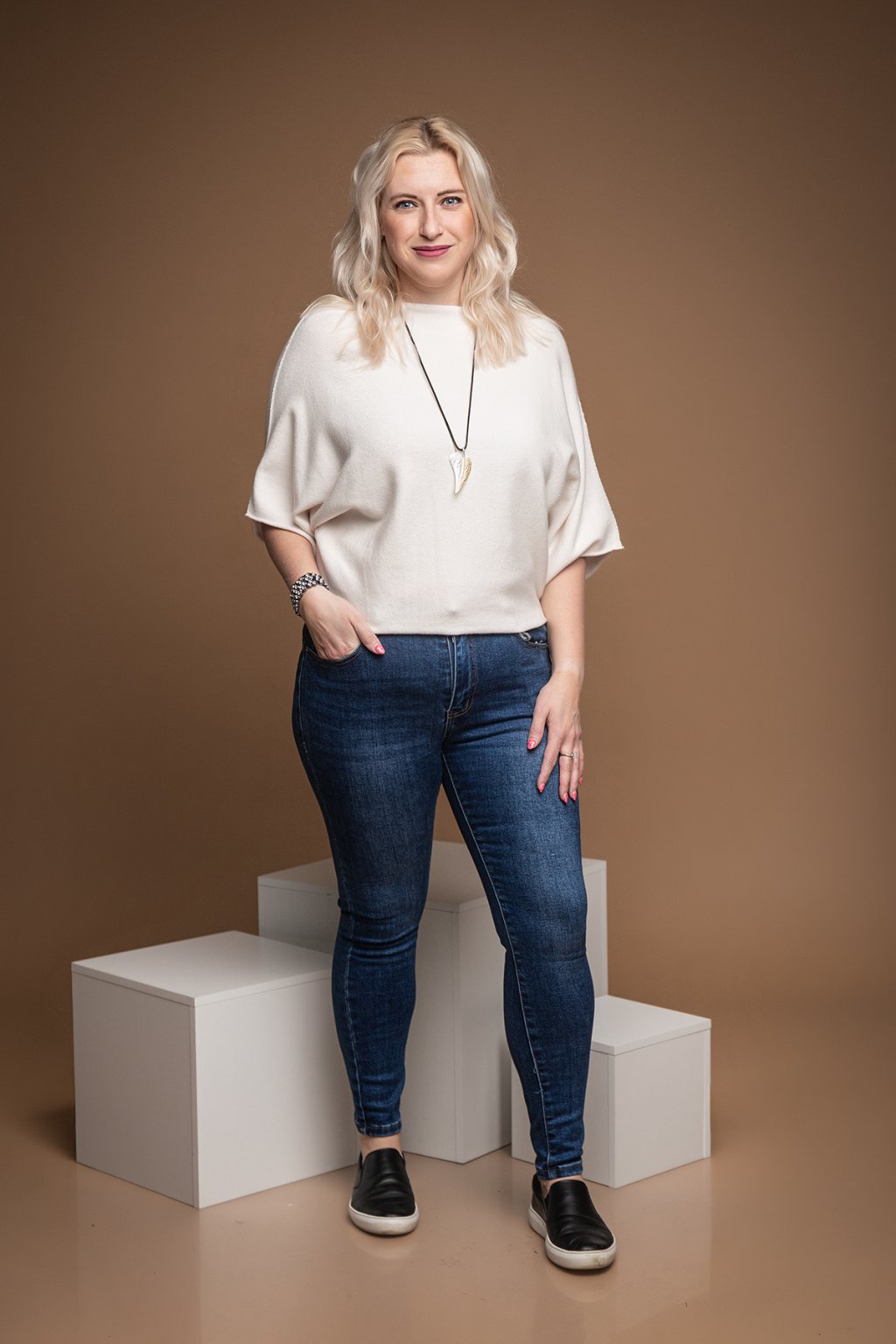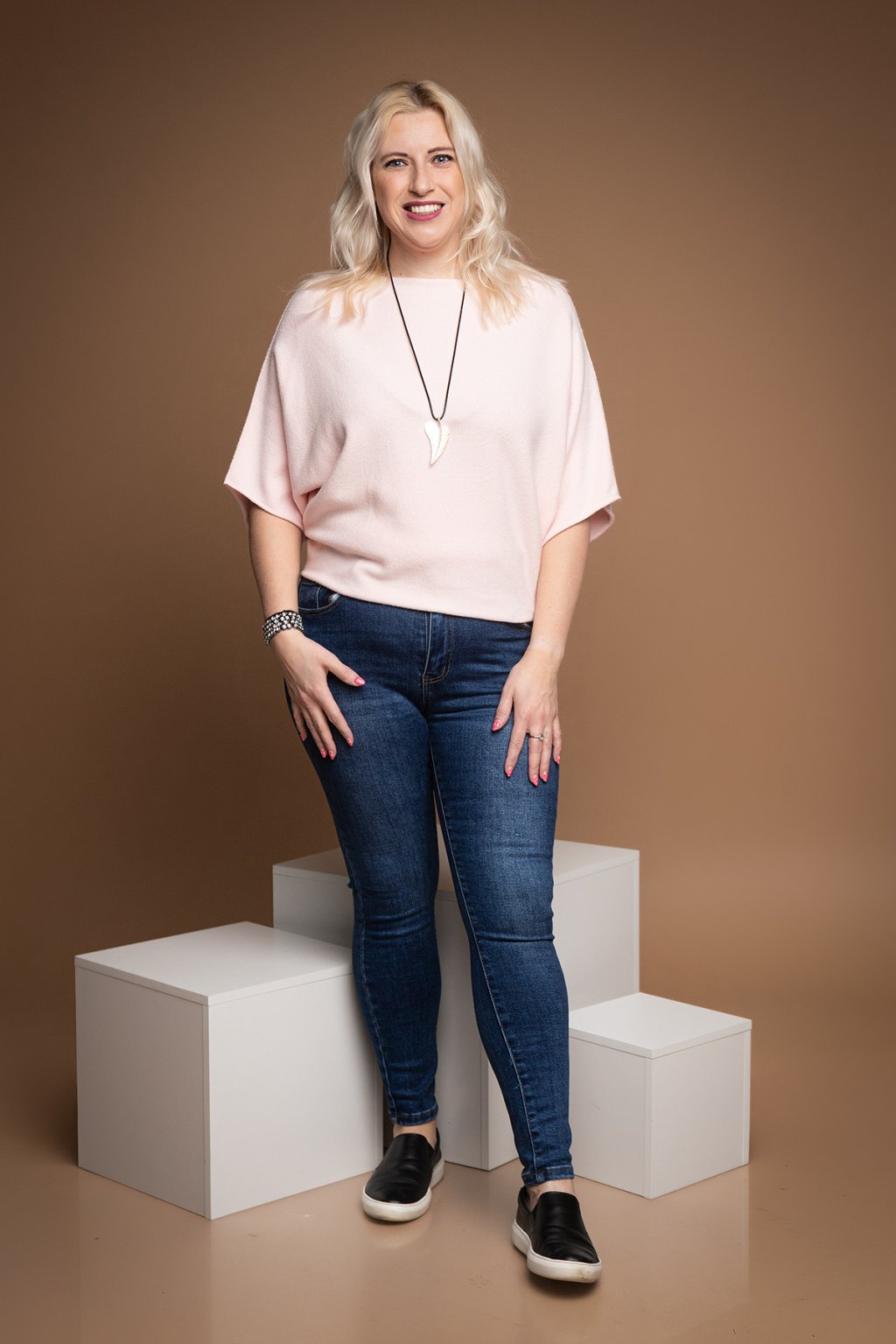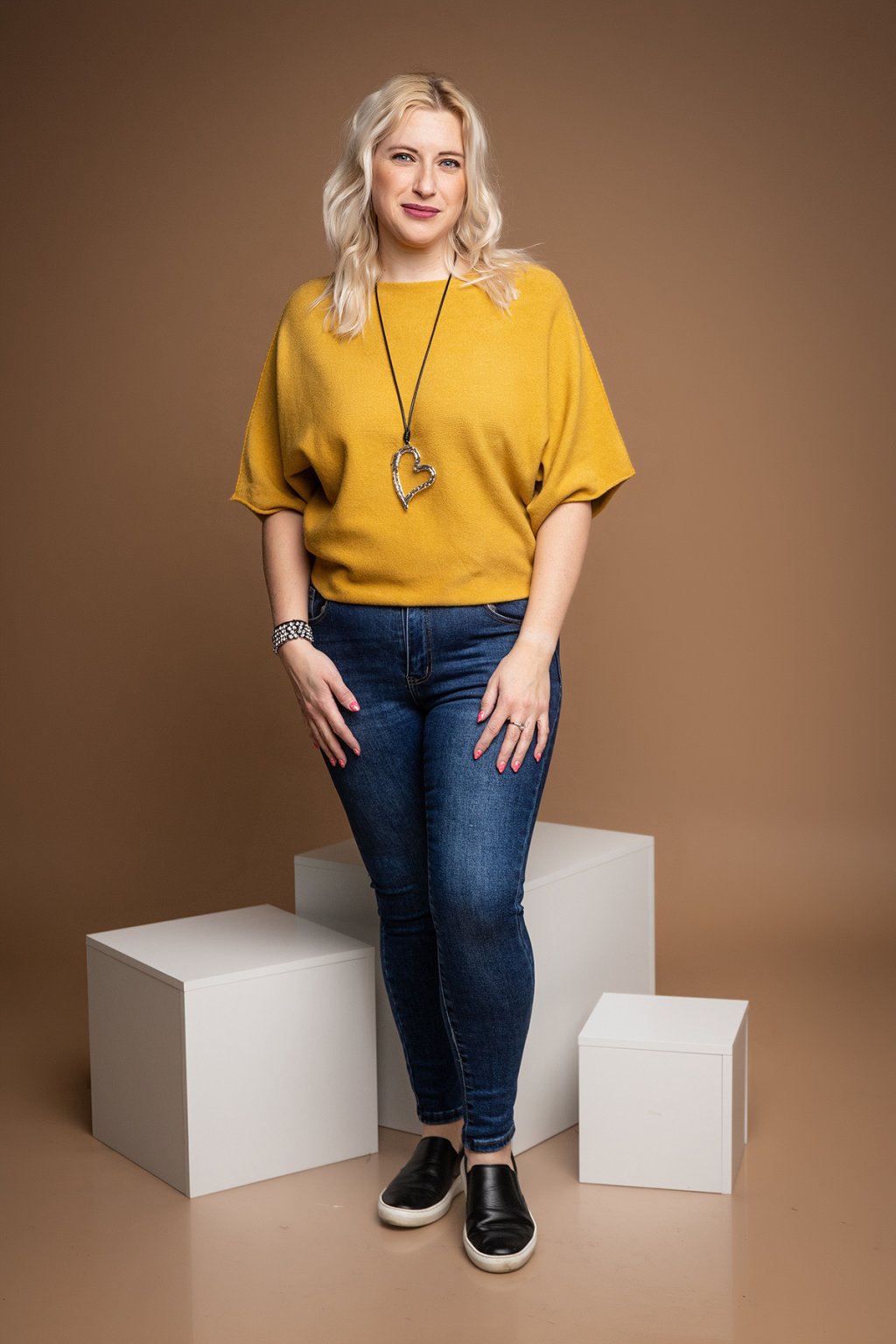 Dámský svetr BRIDGET je naprosto famózní a neodolatelný kousek. Svetřík má volný střih a nechybí mu ani netopýří rukávy. Svým střihem je tento kousek velice šik a dodá každému tvému outfitu šmrnc. U krku má lodičkový výstřih a volný spodní lem, který vypadá skvěle i zakasaný. Krásně pruží a přizpůsobí se tvé postavě. Tento oversize kousek se hodí naprosto ke všemu a je velice příjemný na těle. V naší nabídce jej najdeš v několika veselých barvách a nejlépe ti bude sedět pokud nosíš velikost M-2XL.