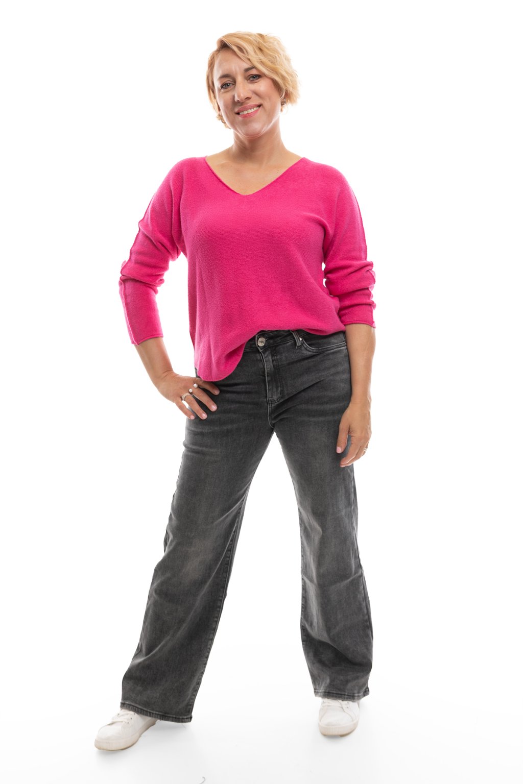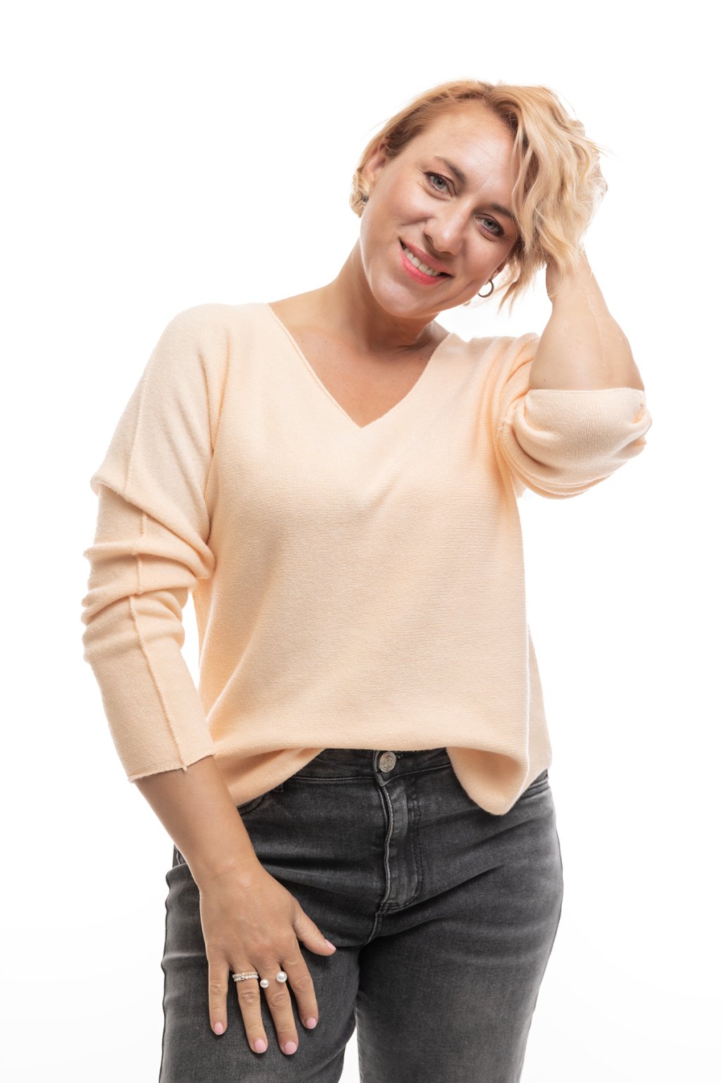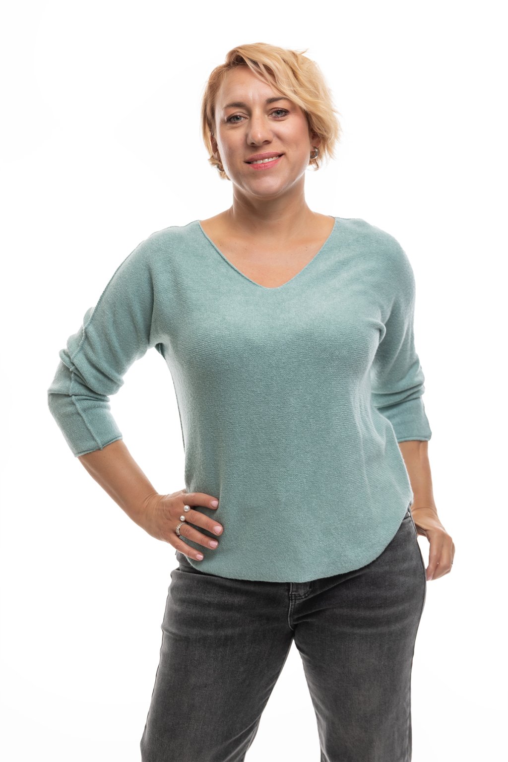 Dámský svetr COCOA má volný střih a výstřih do písmene V. Tento svetr ti dopřeje pohodlí a volnost. Je krásně vzdušný a neuvěřitelně lehký. Vybírat si u nás můžeš z obrovského spektra barev a nejlépe sedí na postavu s velikostí L-2XL.
