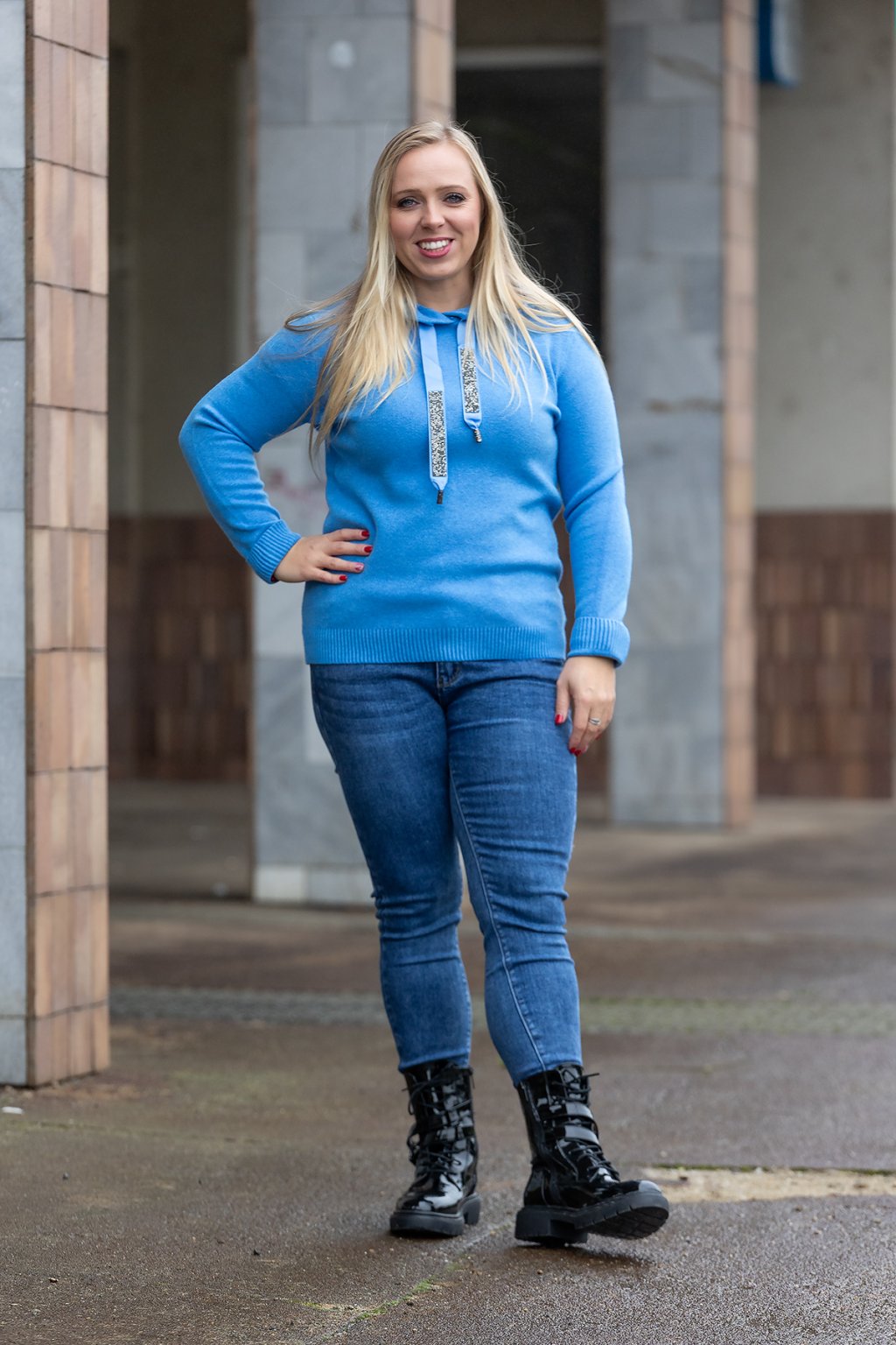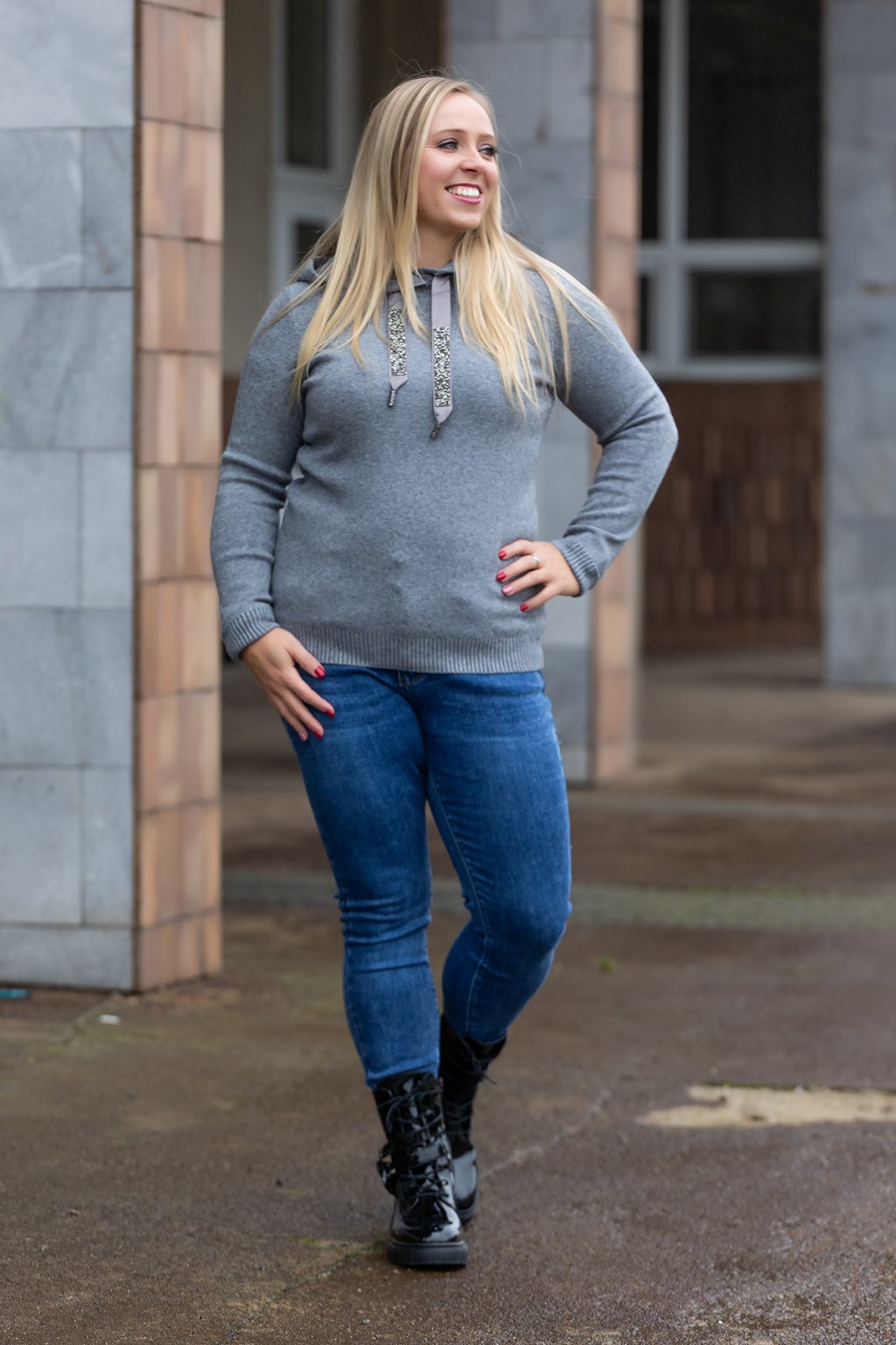 Příjemný svetr s kapucí PERLA je ležérní a nadčasový kousek, který tě zaujme svým nevšedním dojmem. Hebký svetřík doplněný kapucí a navíc tkaničkami, které jsou zdobené kamínky.