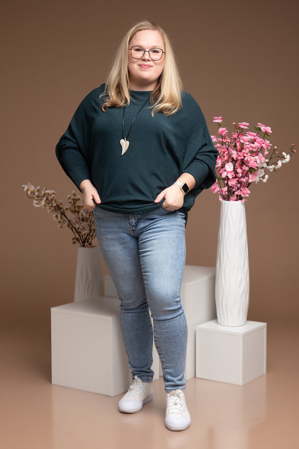 Dámský svetr IRENE je jako stvořený pro všechny dámy, které hledají krásný univerzální, stylový a zároveň pohodlný kousek na jakoukoliv příležitost. Na první pohled tě zaujme lodičkový nabíraný výstřih, který je velmi decentní, zároveň ale šik s dotekem ženskosti. Svetřík má dlouhé rukávy v netopýřím střihu, což mu jen dodává šmrnc. Ležérní, ale přitom stále elegantní, tento úchvatný kousek tě zkrátka nezklame. V neposlední řadě si zamiluješ také tak hebký materiál, že ho ani nebudeš chtít sundat. Svetr nejlépe sedne na velikosti L-3XL Můžeš vybírat z mnoha barev tu pravou, která podtrhne tvou krásu.