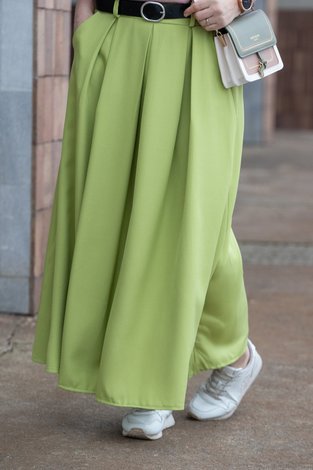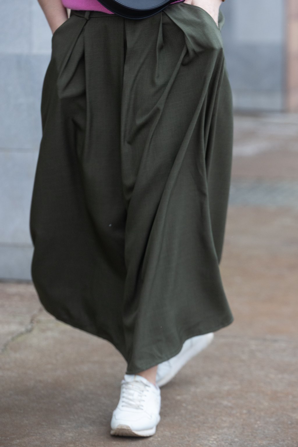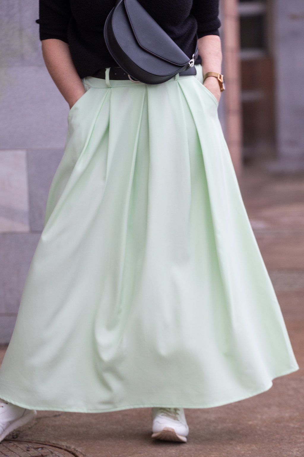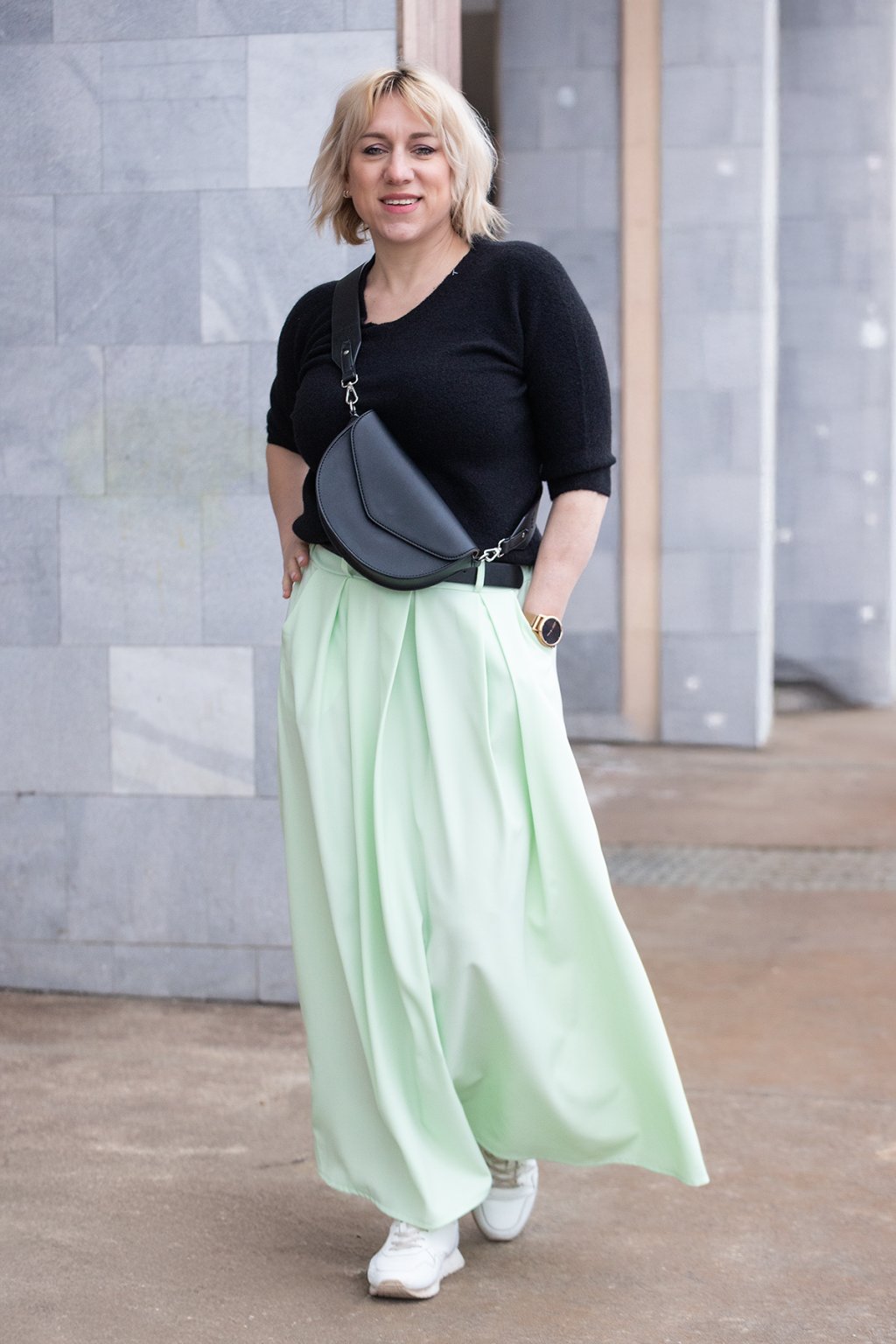 Dlouhá sukně ANGIE je stylová a elegantní. Vezmi si ji do práce, nebo na rande a zaručeně okouzlíš své okolí. Pohodlí je jisté díky pružnému pasu pomocí všité gumičky v zadní části. Vpředu má efektní sklady a na bocích nechybí kapsy. Součástí sukně je široký pásek. Nejlépe sedne na konfekční velikost 38-42. Vybírat můžeš ze 4 barev.