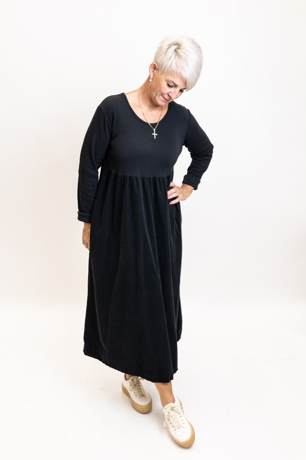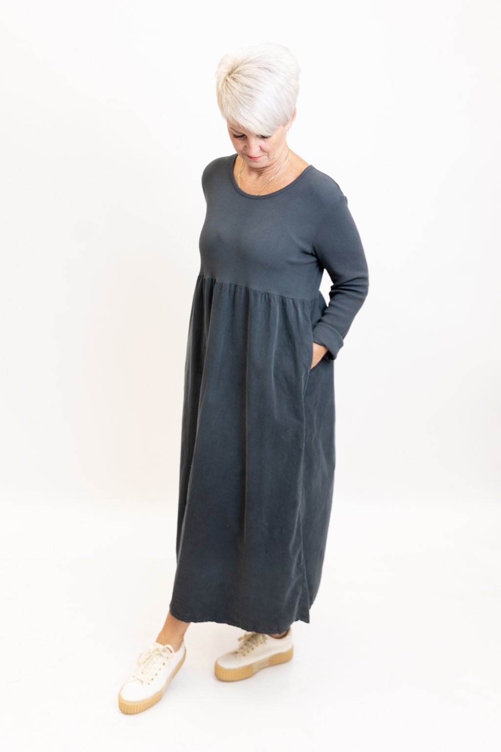 Dlouhé šaty COLETTE se těší oblibě střihem i materiálem. Vrchní část šatů je z bavlny, sukně je z jemného manšestru a díky tomu vrhá efektní (ale decentní) odlesky. Co tě bude bavit je, že tyhle šaty mají taky kapsy v oblasti boků. :) Velikostně nejlépe sednou na L až 2XL. Podrobnější rozměry najdeš v popisku produktu. Máme ji pro tebe ve 4 barvách.