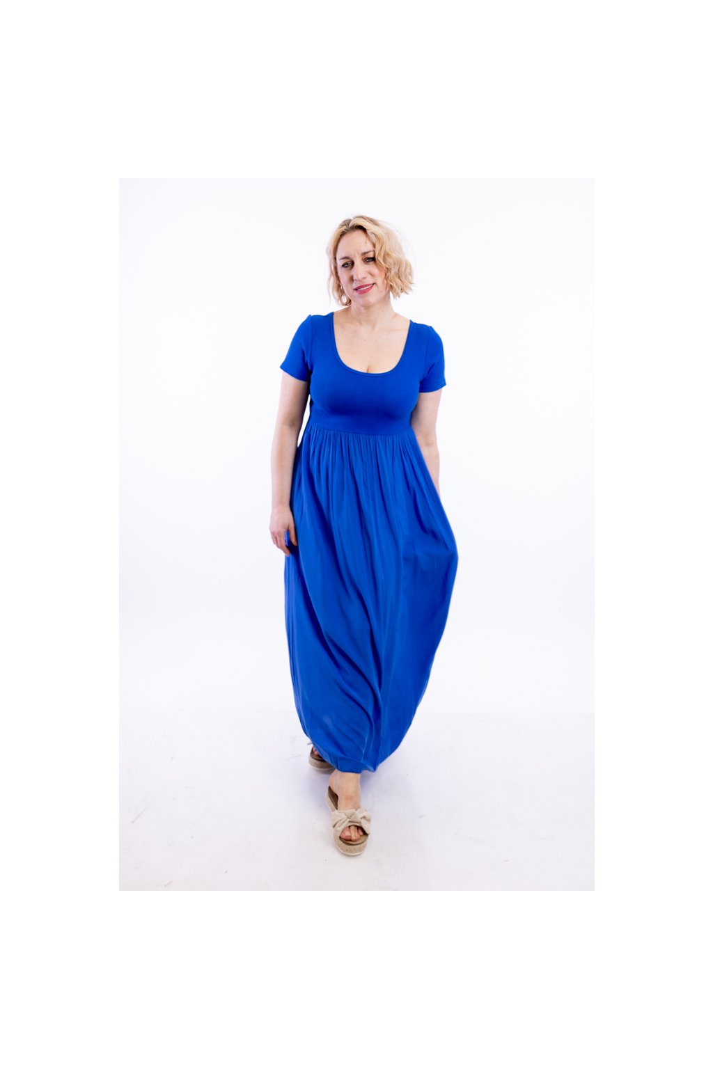 Dlouhé šaty ROSA mají v horní části žebrování a pruží, díky tomu se přizpůsobí tvému poprsí, zatímco dlouhá vzdušná sukňová část je hezky splývavá. Díky své délce jsou vhodné zejména pro vyšší dámy. Raduška měří 178 cm. Šaty u nás najdeš ve dvou velikostech: M až XL a XL až 3XL. Vybírat můžeš z několika barev.