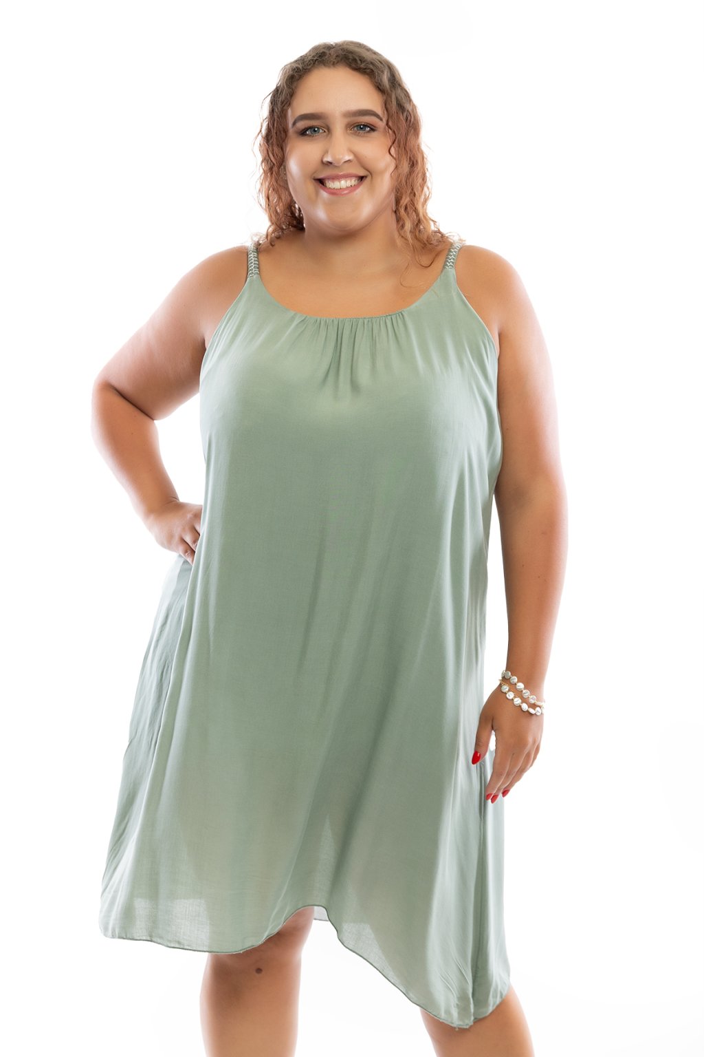 Letní šaty OLIVIA jsou jednoduchý kousek, který by neměl ve tvém šatníku chybět. Šaty jsou lehoučké a velmi pohodlné. Šaty mají rovný střih a jsou vzdušné. Tenká ramínka jsou zdobené vyšíváním a připomínají copánky. U výstřihu mají šaty řasení, které vytváří krásný efekt. Nejlépe sedí od velikosti XL-4XL a jsou dostupné v několika barvách.