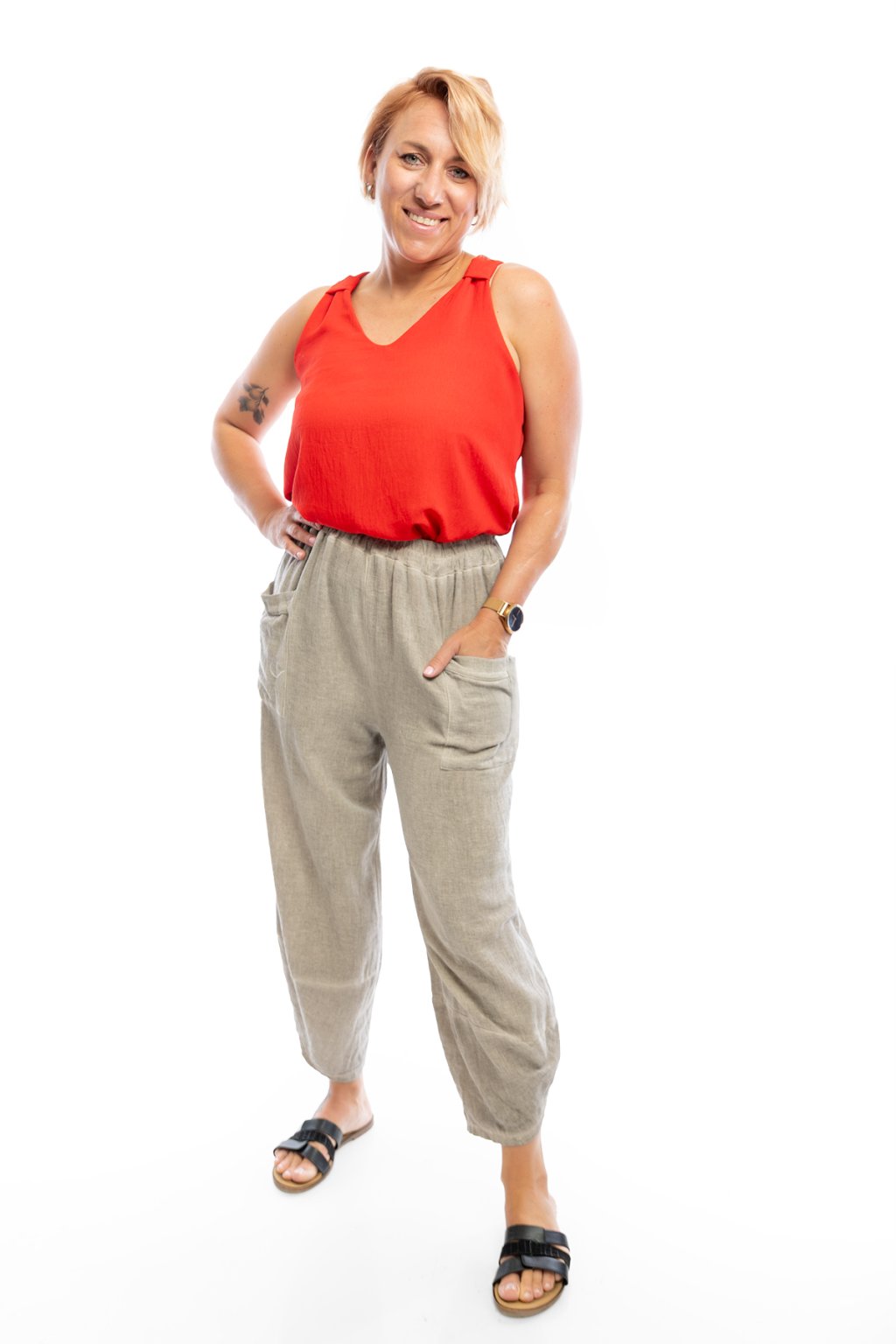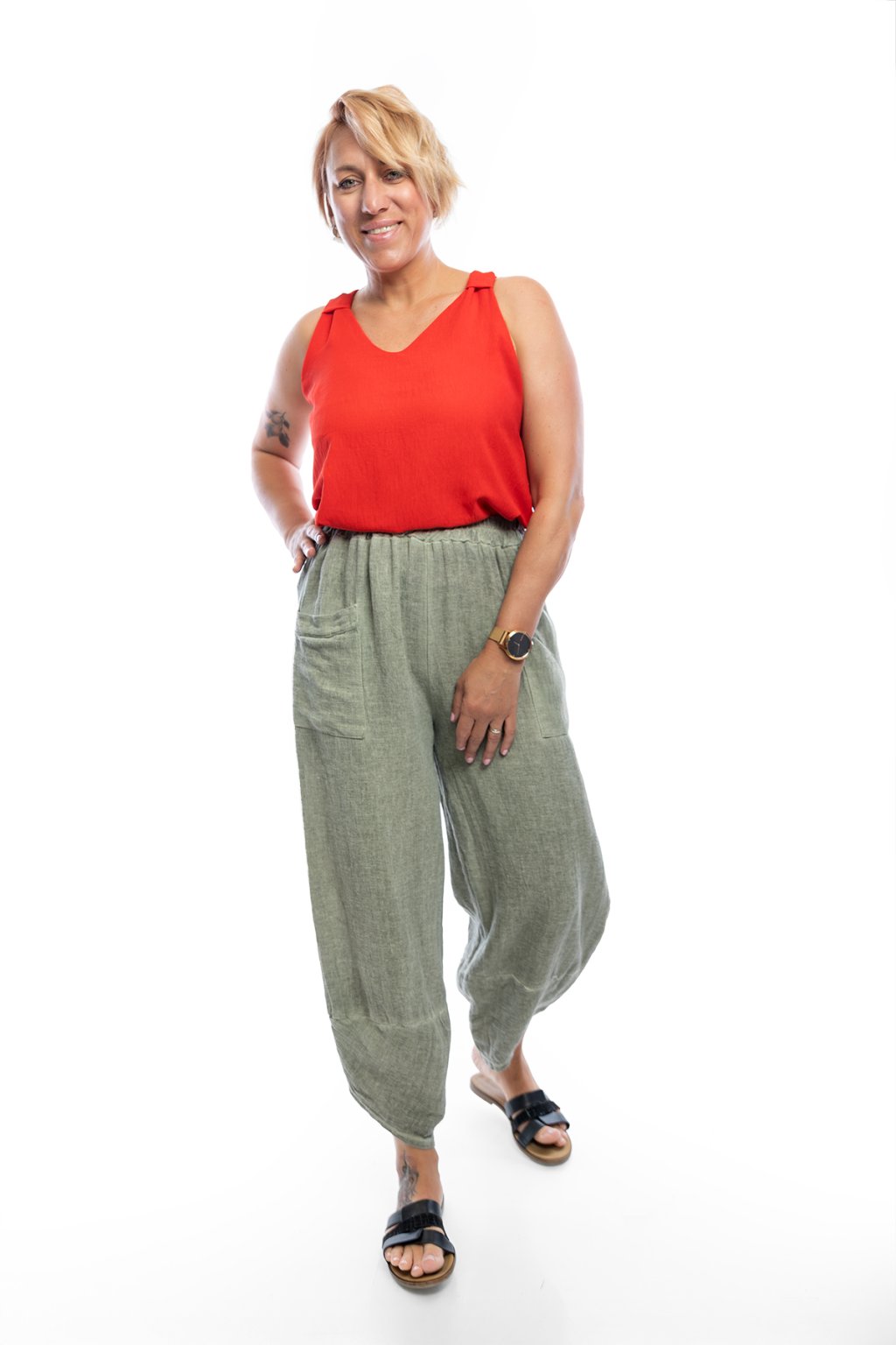 Lněné kalhoty KATARINA jsou krásně vzdušné a pohodlné. Rozhodně by ve tvém šatníku neměly chybět.