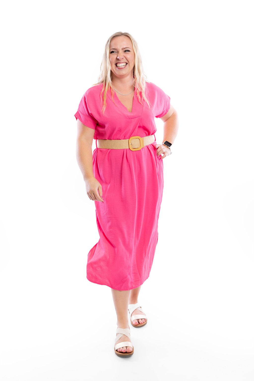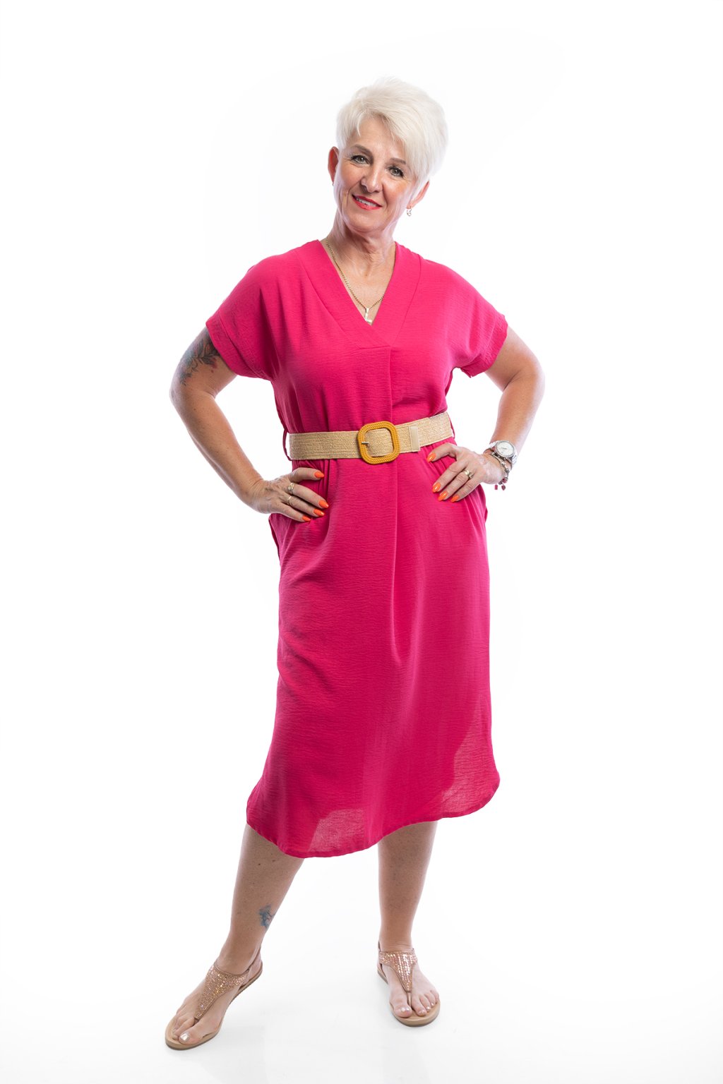 Midi šaty JOSIE rozzáří tvůj šatník barvami. Mají véčkový výstřih s drobným překladem. Na bocích se nachází kapsy. Každý kus šatů je doplněn originálním páskem zaplétaného slaměného vzhledu. Šaty nejlépe sednou velikostem M a L a vybírat můžeš ze svěžích i zemitých barev.