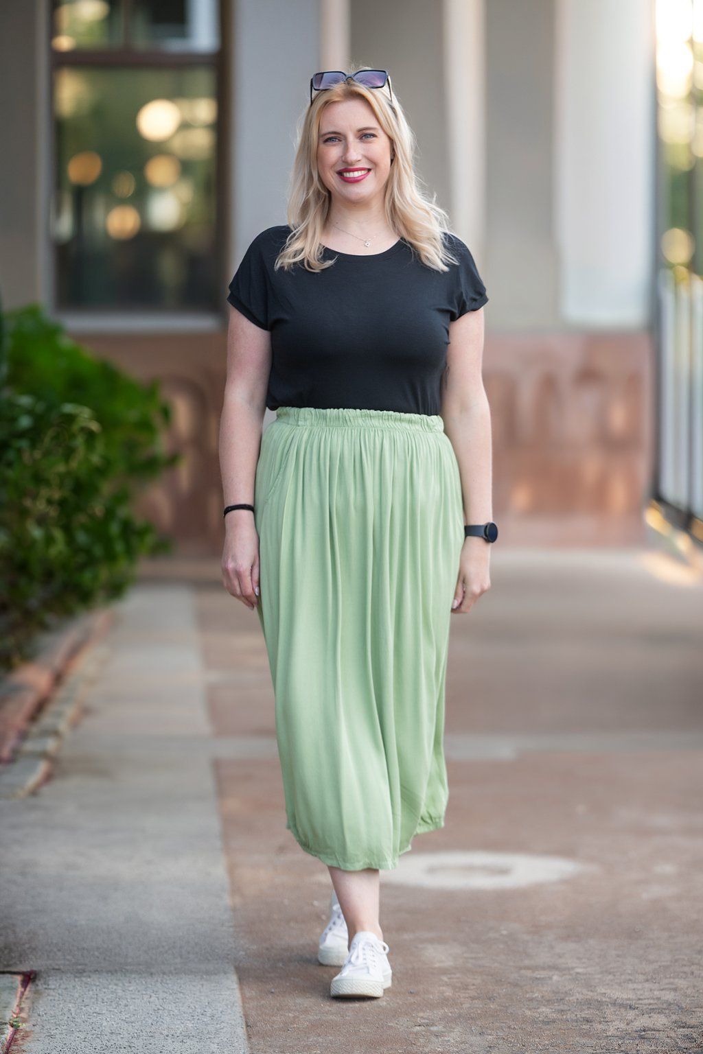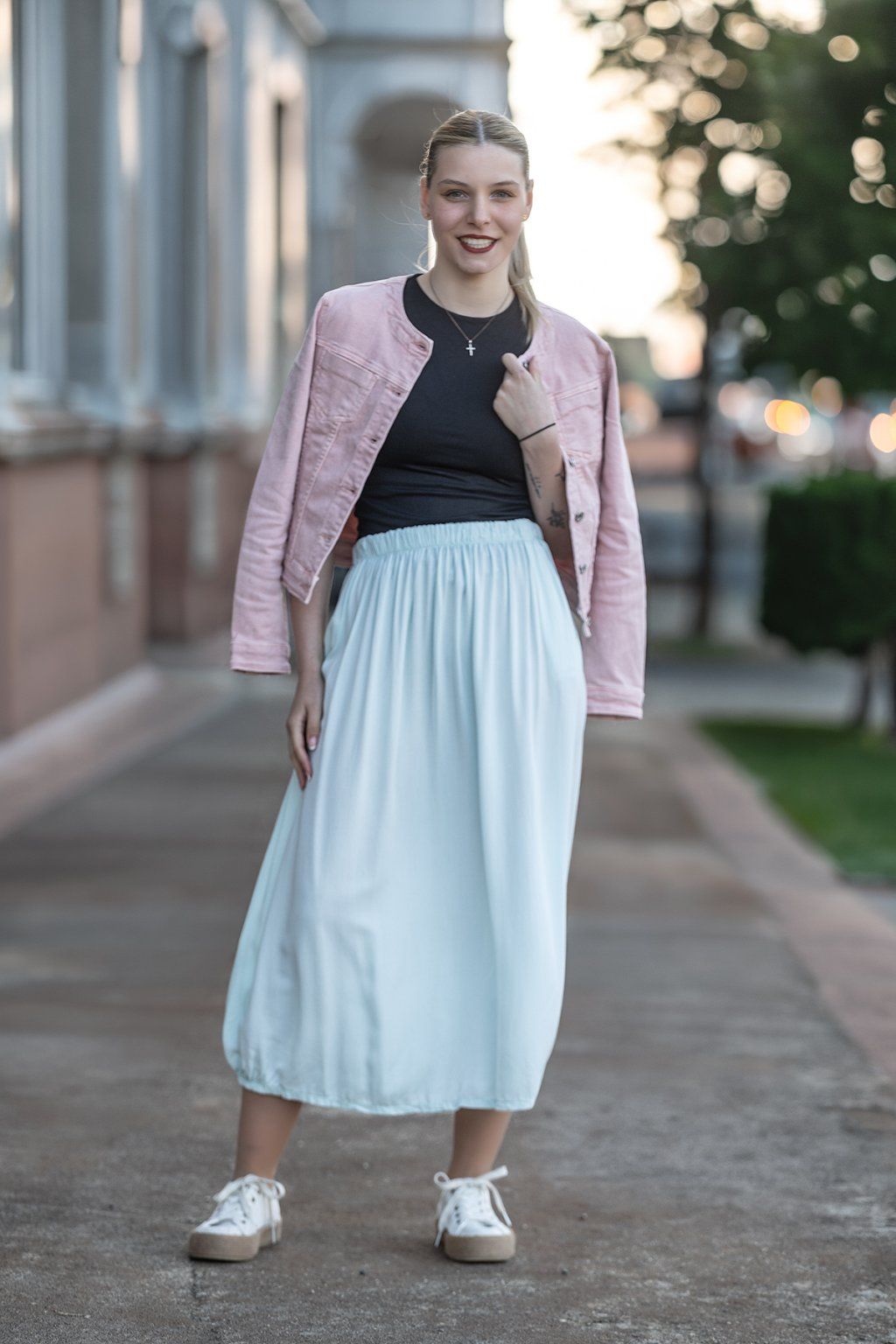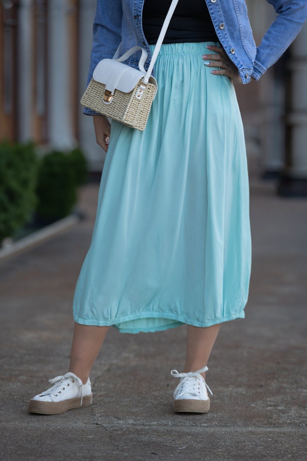 Sukně je vzdušná a lehká, na léto ideální. Moc hezky se mi nosí. Barva je krásná. Kdyby tam byly poutka na pásek, bylo by to lepší, ale sukni mám mezi oblíbenými kusy oblečení.