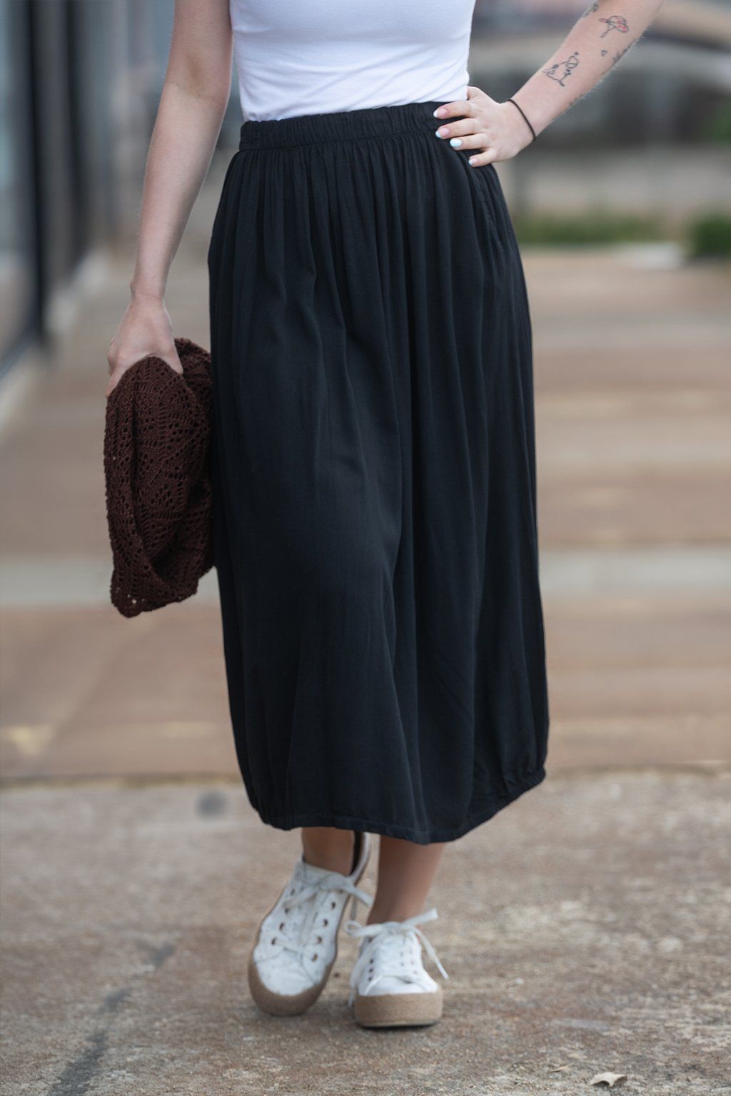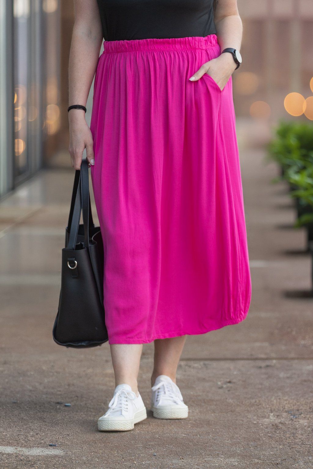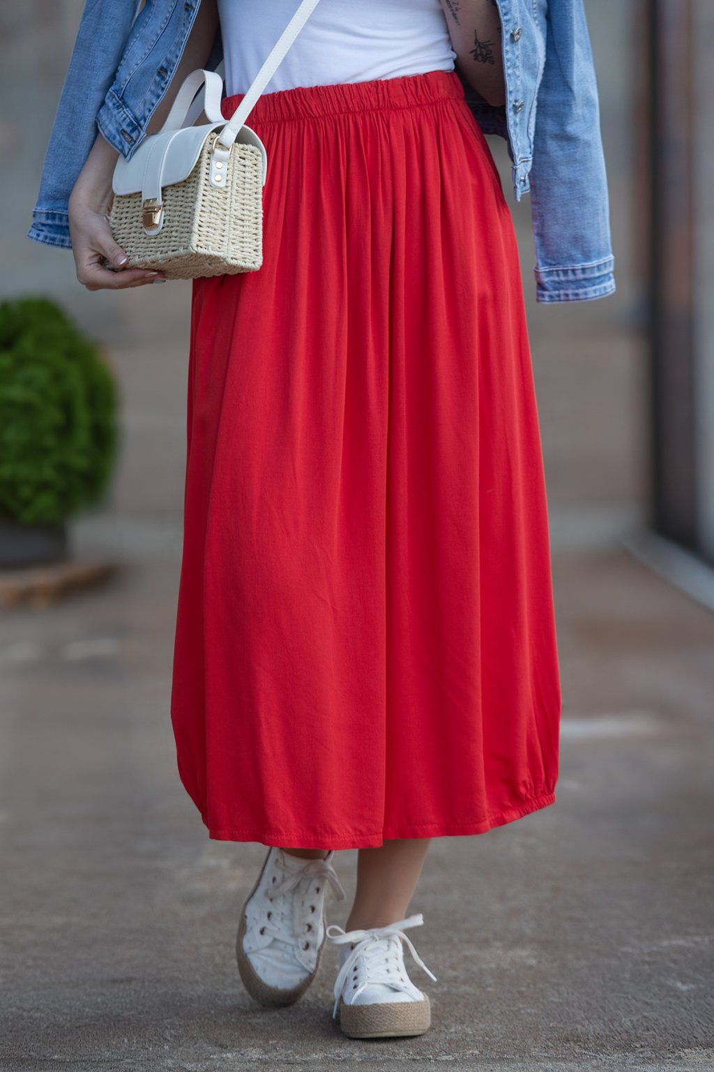 Midi sukně WINDY je doslova základ každého šatníku. V pase má pružnou gumu a na bocích kapsy. Sukně je vyrobena z viskózy, díky které je lehoučká, vzdušná a velmi příjemná na nošení. Nejlépe sedne velikostem S až L a v nabídce najdeš hned několik neodolatelných barev