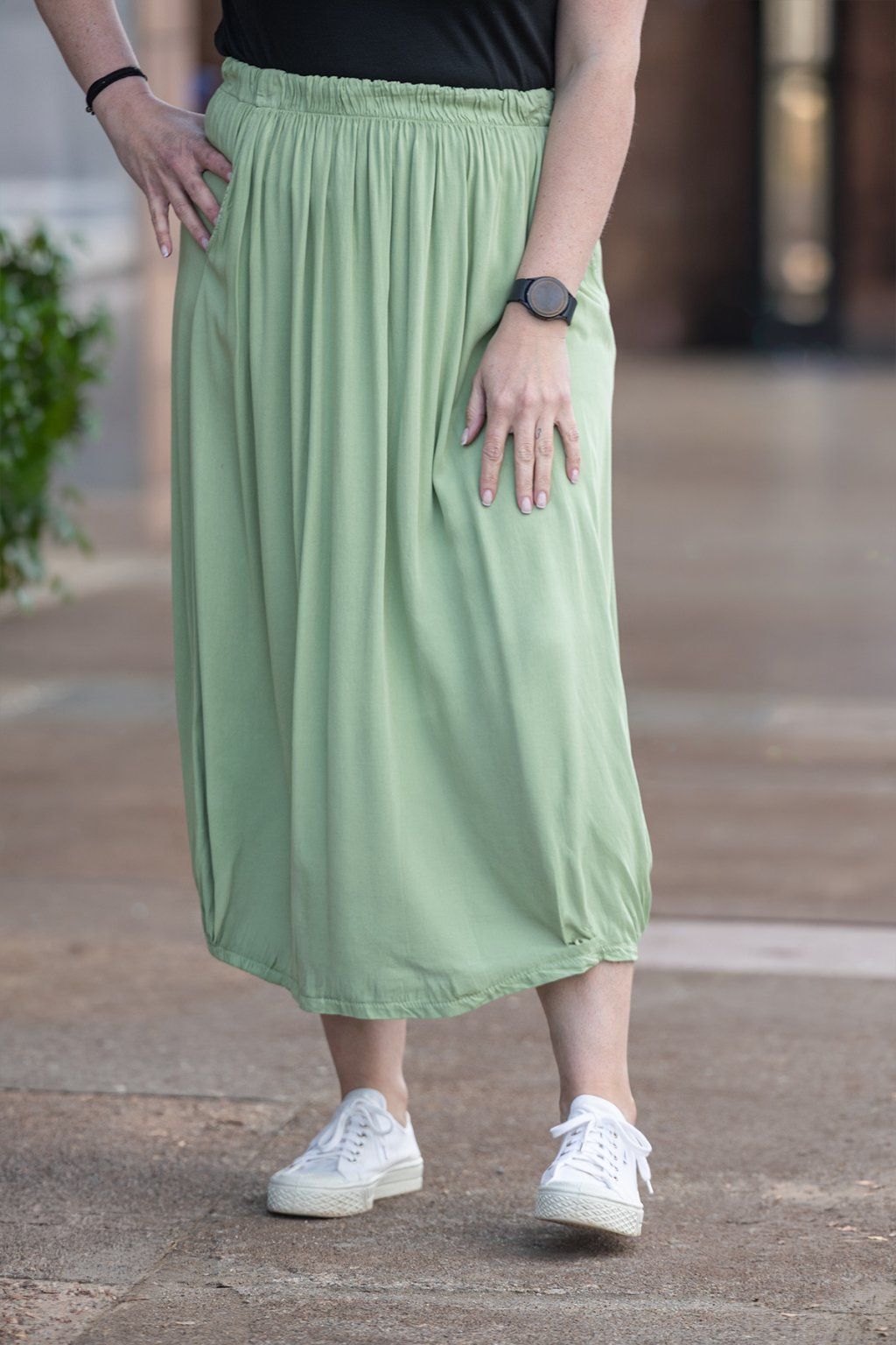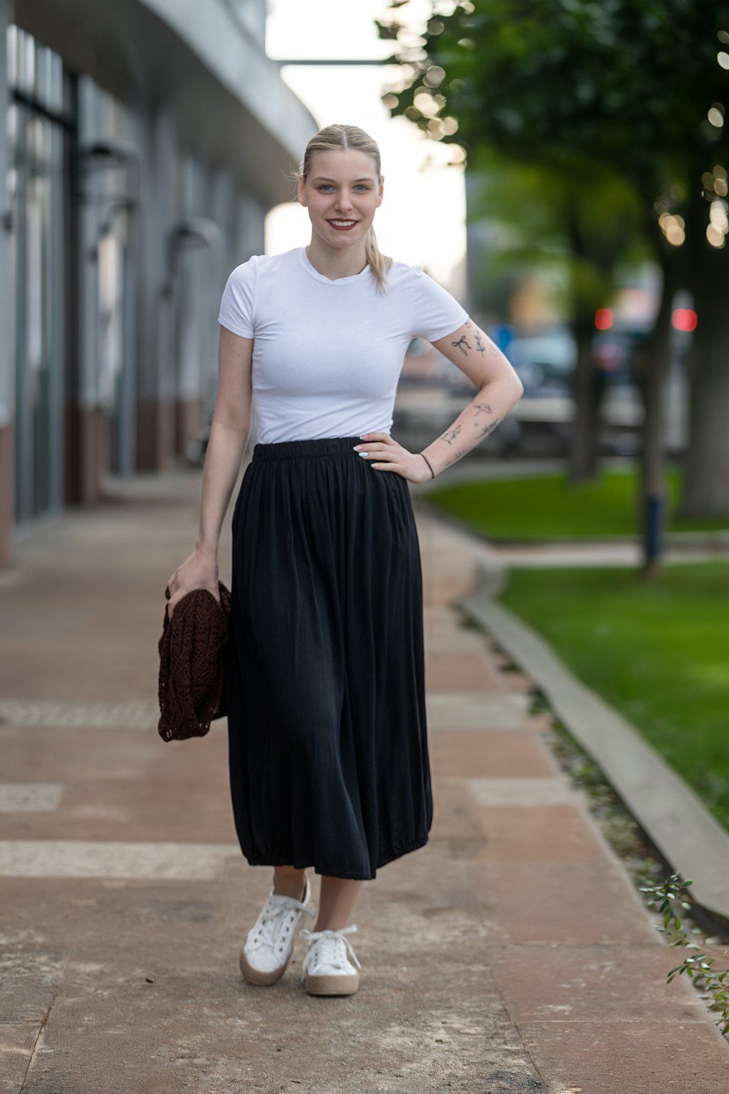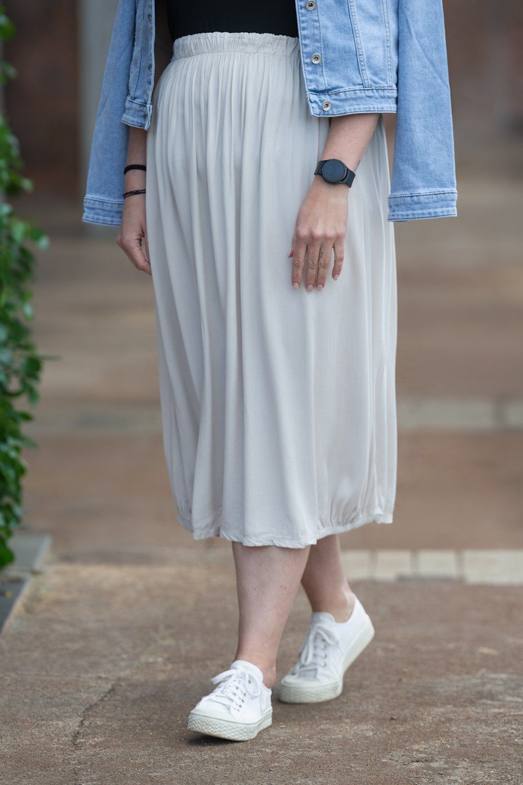 Midi sukně WINDY je doslova základ každého šatníku. V pase má pružnou gumu a na bocích kapsy. Sukně je vyrobena z viskózy, díky které je lehoučká, vzdušná a velmi příjemná na nošení. Nejlépe sedne velikostem S až L a v nabídce najdeš hned několik neodolatelných barev