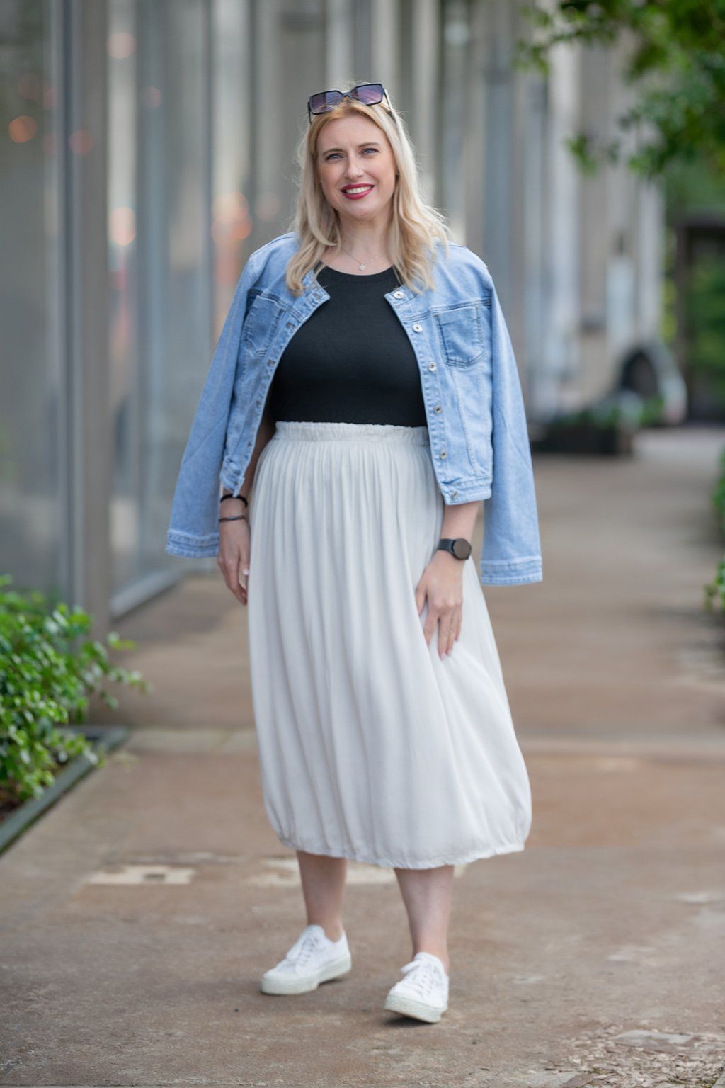 Protože jsem malá, sukni mám skoro ke kotníkům, ale nevadí mi to. Je úžasná, vzdušná.