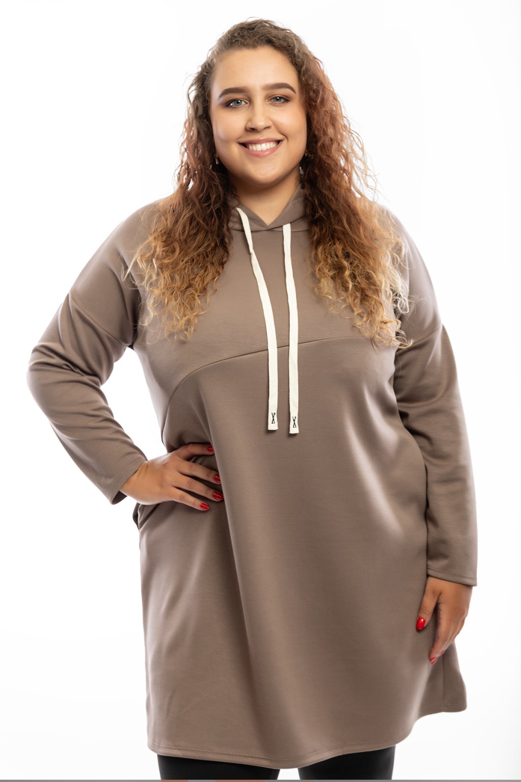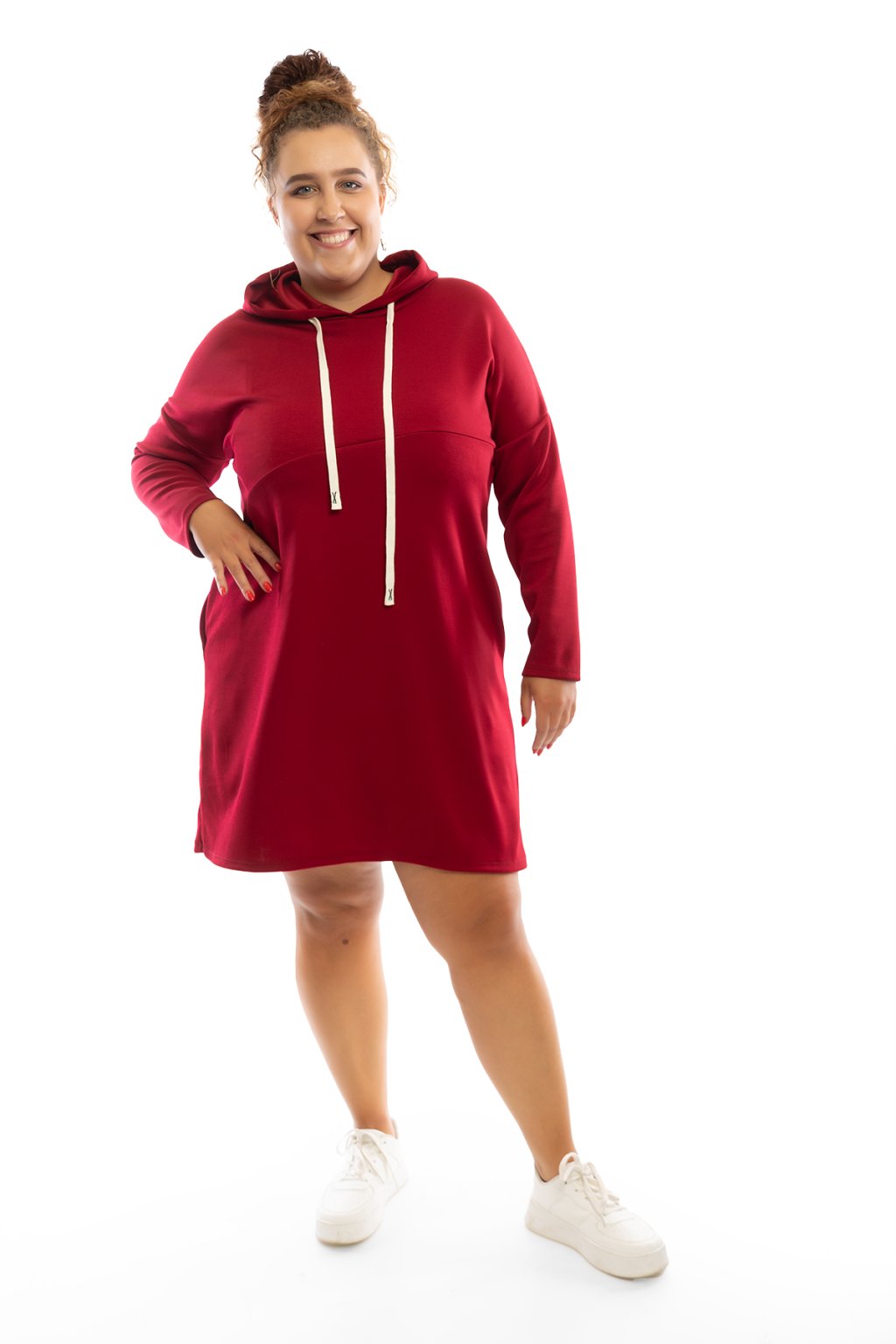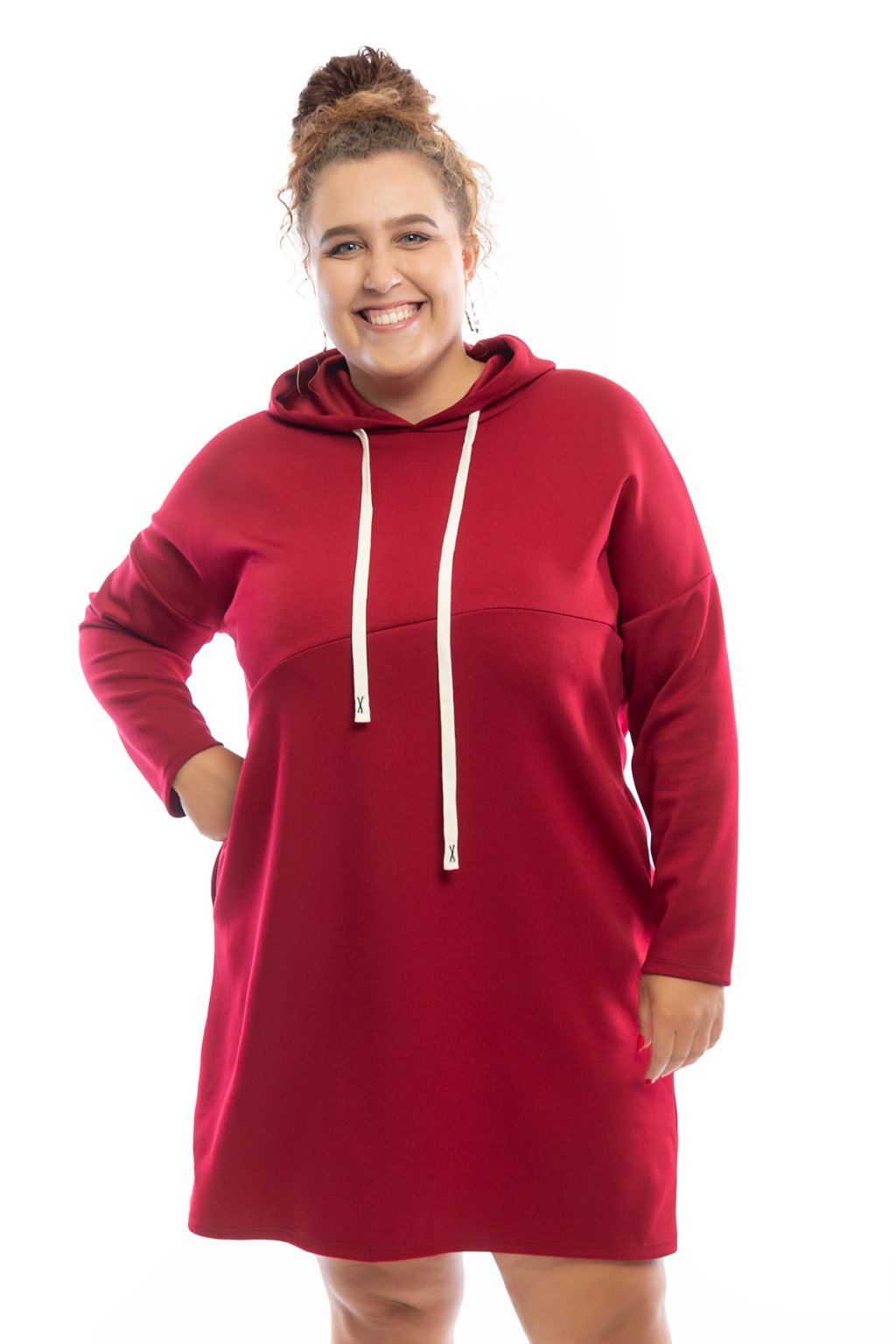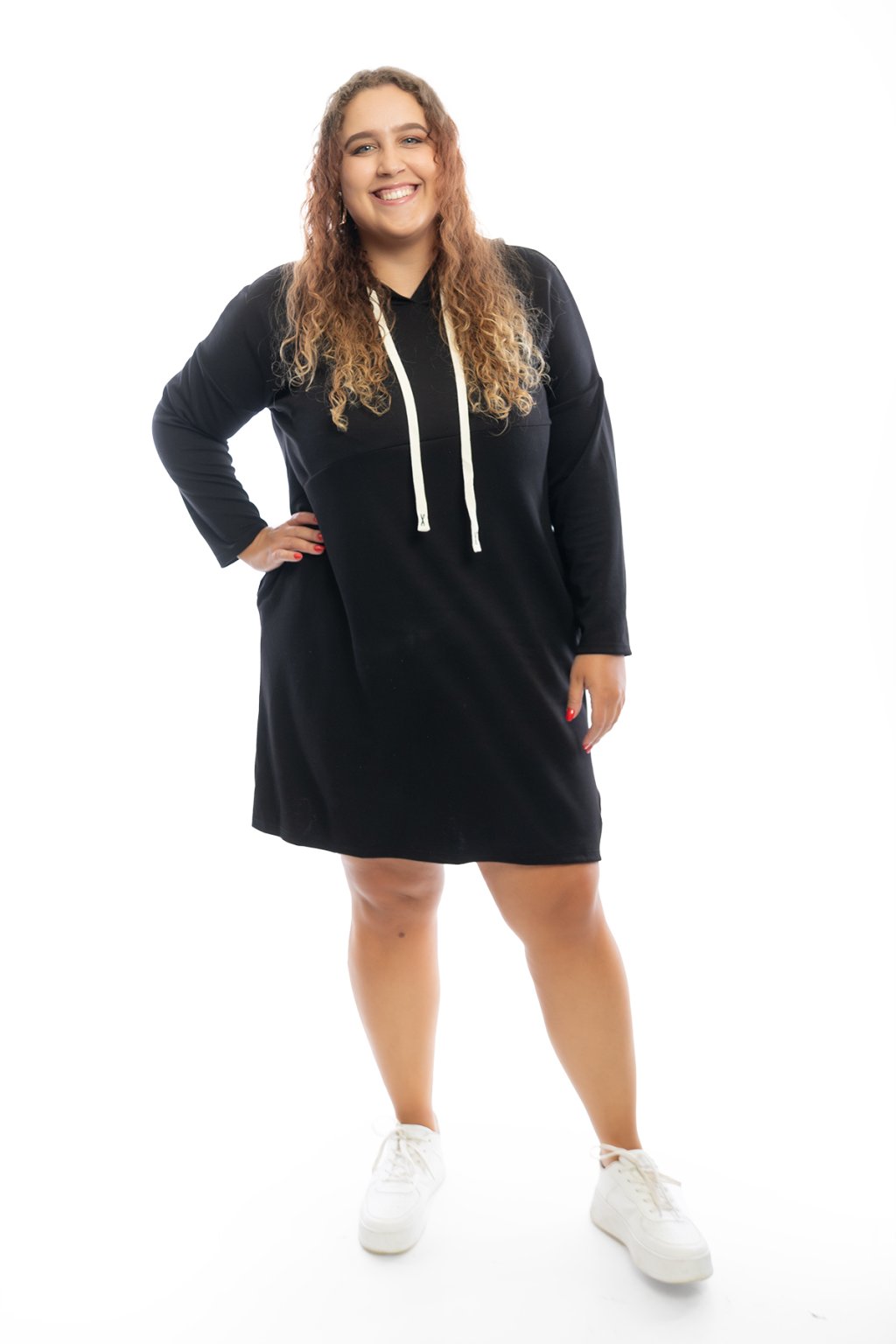 Mikinové šaty TERRY mají dlouhý rukáv a jsou s kapucí. Kapuce má na sobě bílou tkaničku. Šaty jsou rovného střihu a jsou vhodné na každodenní nošení. Mají rovný střih a na přední straně mají vodorovný šev. Nejlépe sedí na velikost L-2XL. Vybrat si můžeš ze spousty barev.