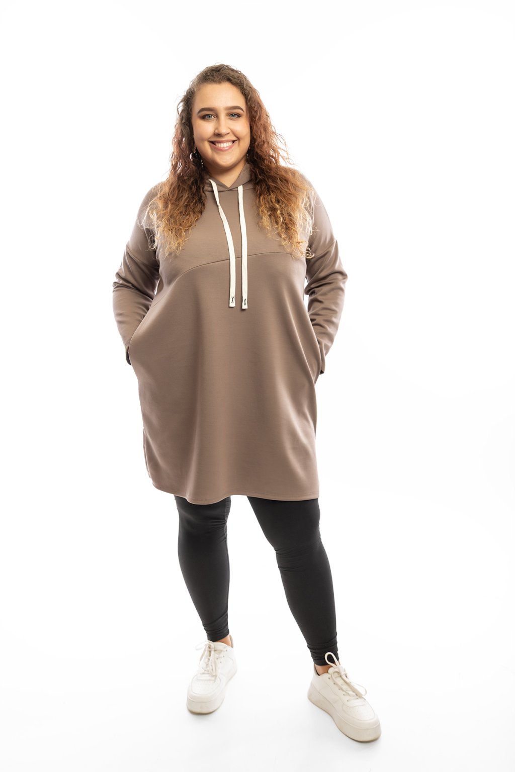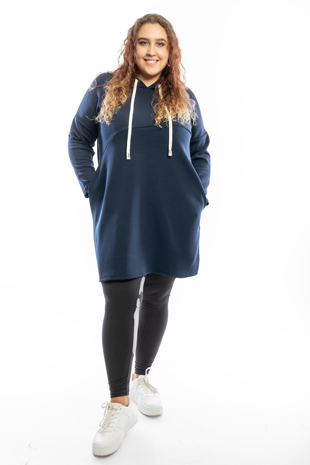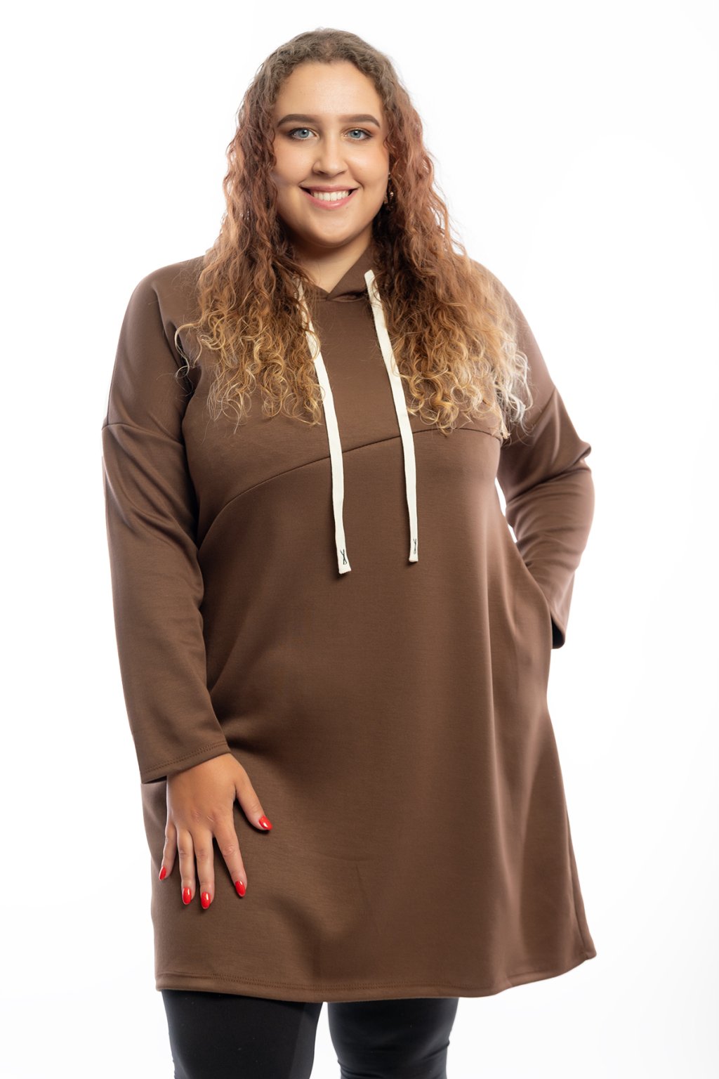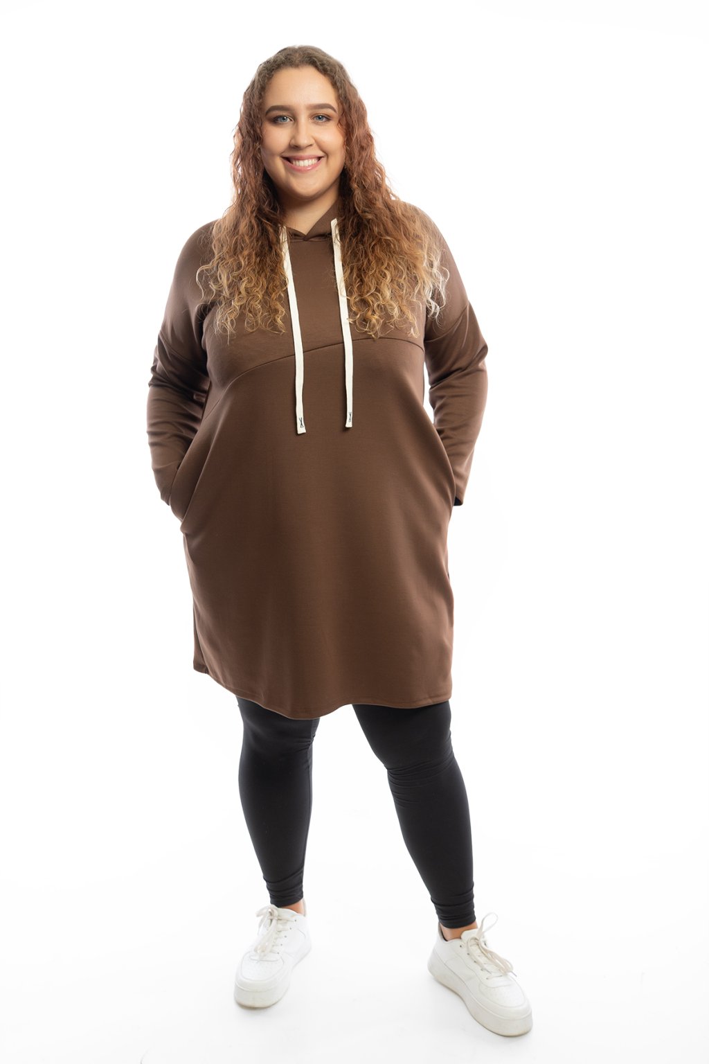 Mikinové šaty TERRY mají dlouhý rukáv a jsou s kapucí. Kapuce má na sobě bílou tkaničku. Šaty jsou rovného střihu a jsou vhodné na každodenní nošení. Mají rovný střih a na přední straně mají vodorovný šev. Nejlépe sedí na velikost L-2XL. Vybrat si můžeš ze spousty barev.