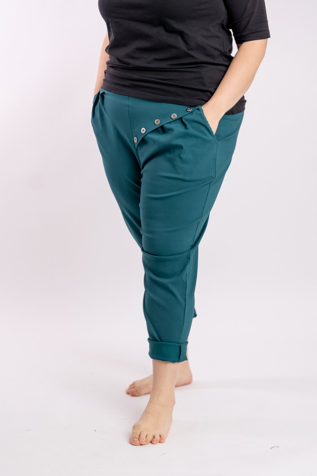 Nadrozměrné pružné kalhoty do gumy ROBY PLUS, jsou naprosto skvělou volbou při volnočasových aktivitách. Kalhoty typu baggy skvěle pruží jak v pase, tak i na nohách, vypadají krásně a přitom jsou pohodlné jako tepláky. Knoflíky na vpředu jsou pouze jen jako ozdoba, ze strany jsou kapsy. Velikostně odpovídají na XL- 4XL, viz rozměry.
