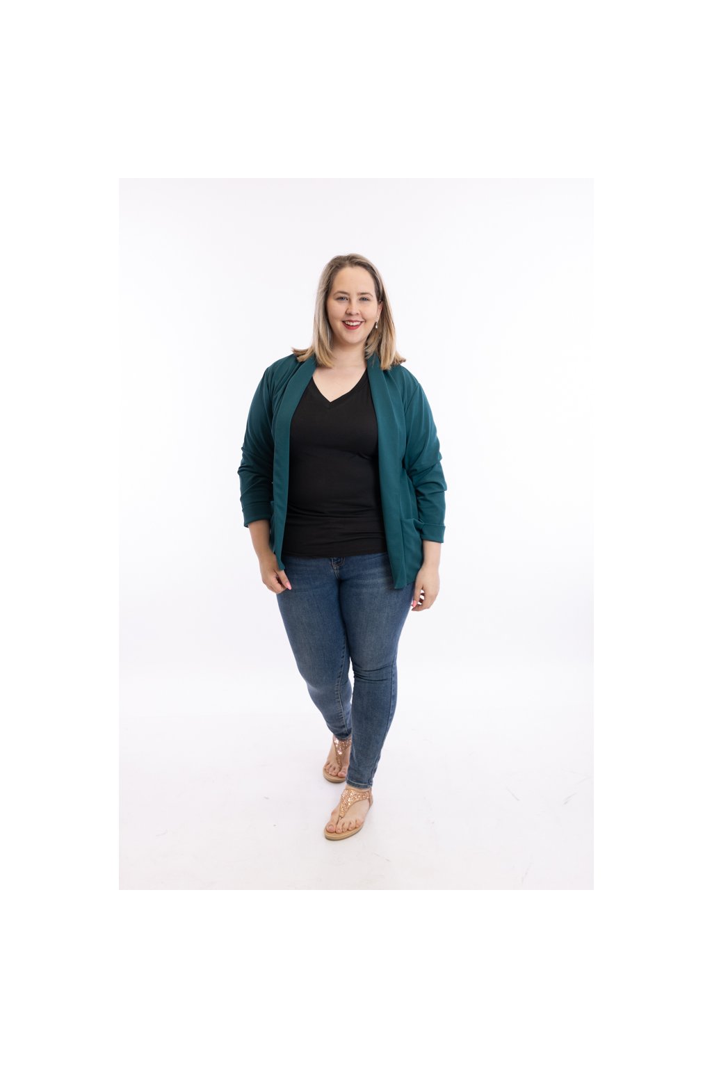 Sáčko DIANA plus je z pružného materiálu, takže netáhne přes záda. Rukávy lze nosit jako dlouhé, nebo 3/4 a z boku má kapsy. Velikostně nejlépe sedne na větší L až 2XL. Vybírat můžeš z několika barev.