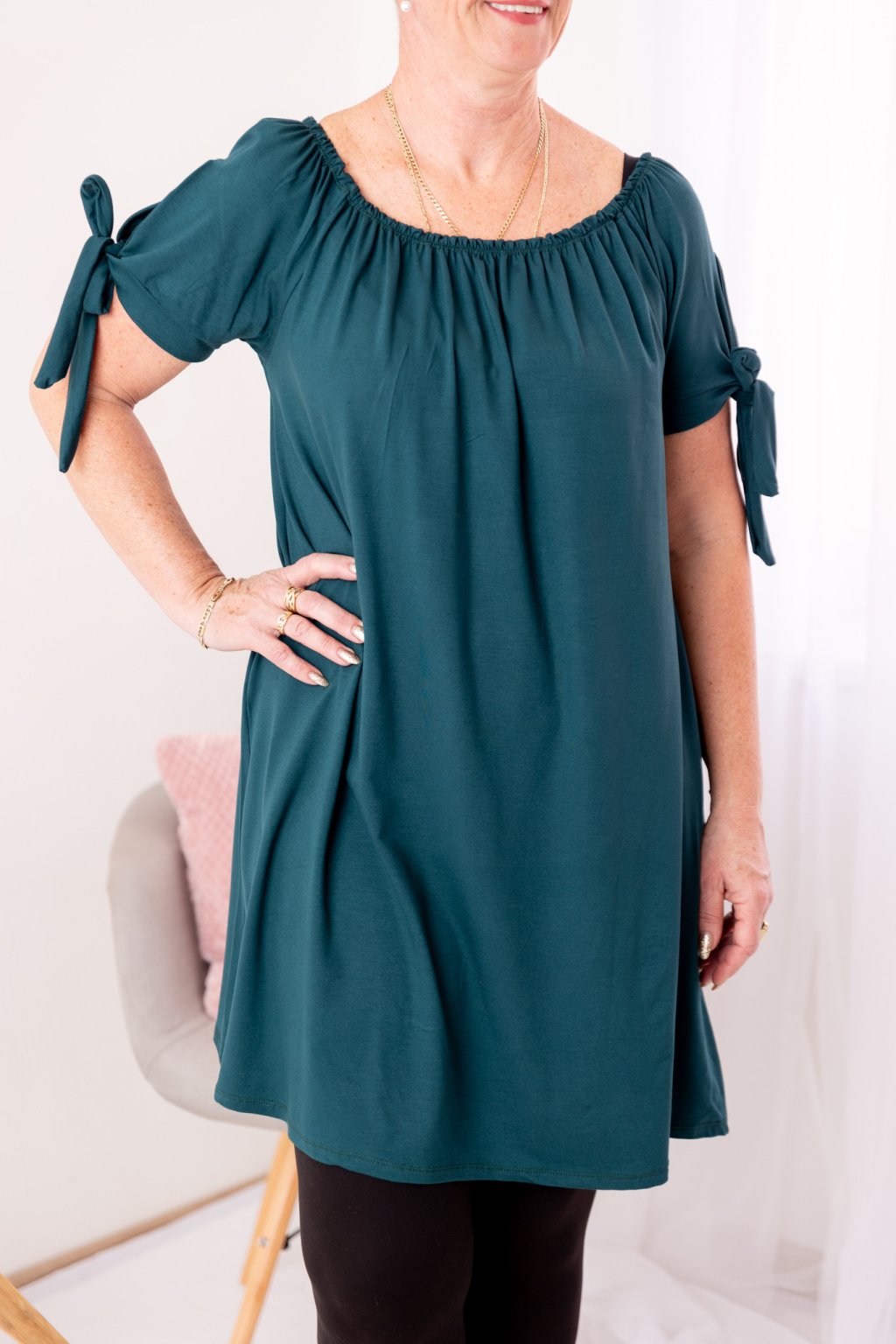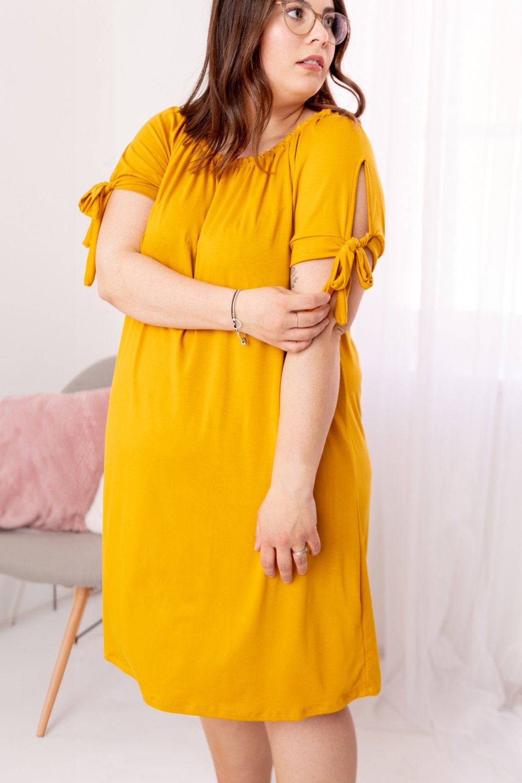 V jednoduchosti a střihu je síla, milujeme šaty, které jsou pohodlné a přitom detailem na rukávech zajímavé. Výstřih je do gumičky, rukávy na šněrování. Střih šatů krásně lichotí dámě, která má větší křivky. V nabídce v několika barvách. Velikostně sedne na XL až 4XL - rozměr najdeš v popisku.