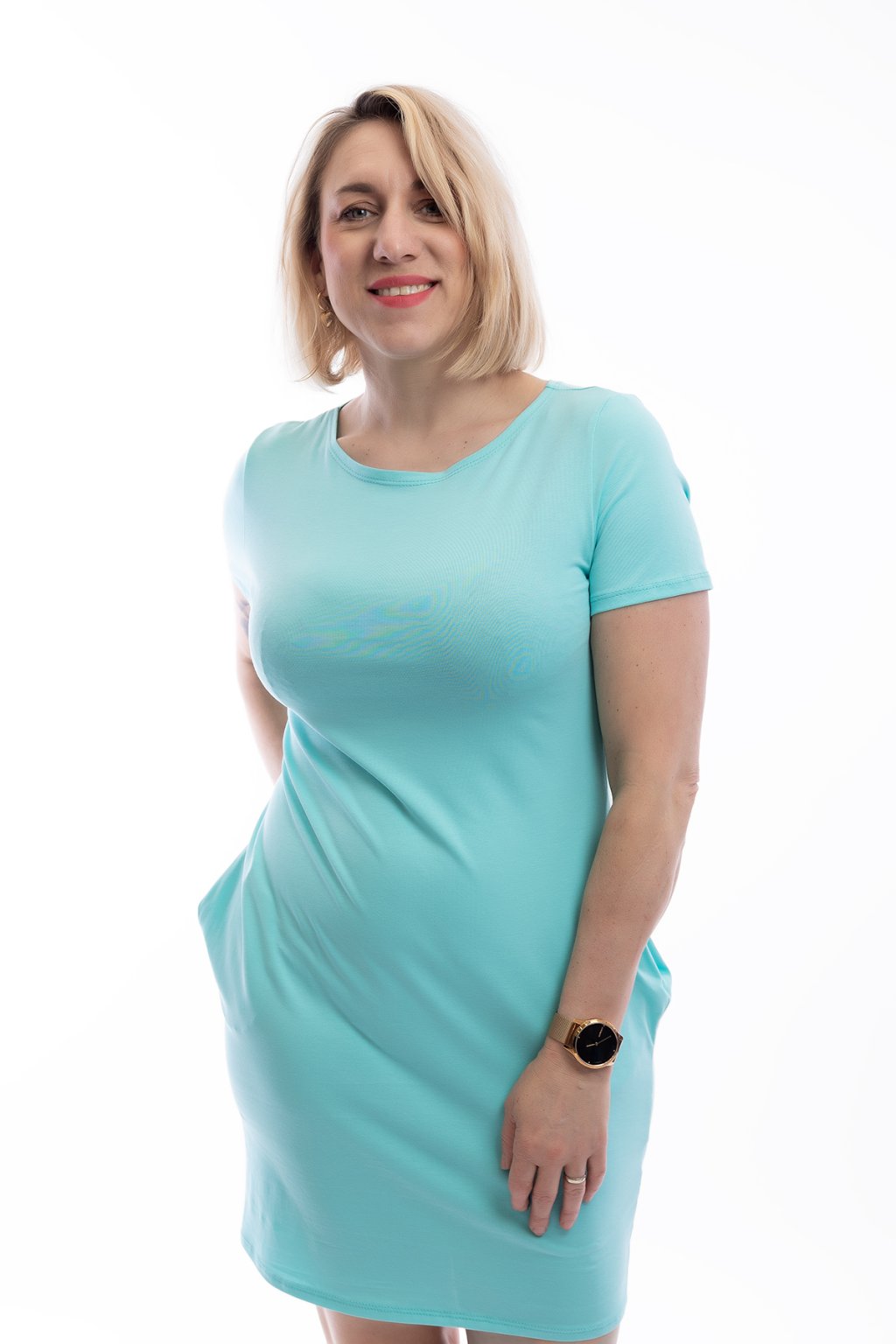 Vaše tak moc oblíbené šaty, to jsou přesně tyto bavlněné, pružné šaty SIMPLY light. V jednoduchosti je síla - z boku kapsy, krátký rukáv a jednoduchý a pohodlný střih. V nabídce jsou v několika barvách. Šaty nejlépe sednou na velikost S až L, modelka na fotce měří 175 cm(rozměr najdeš v popisku). Pokud hledáš ty samé a větší, tak mrkni sem: šaty SIMPLY more