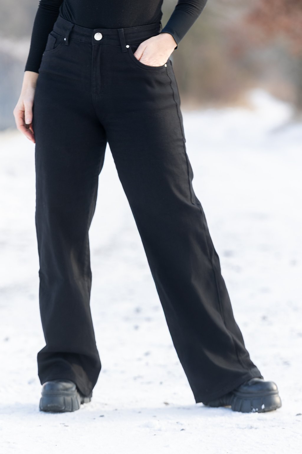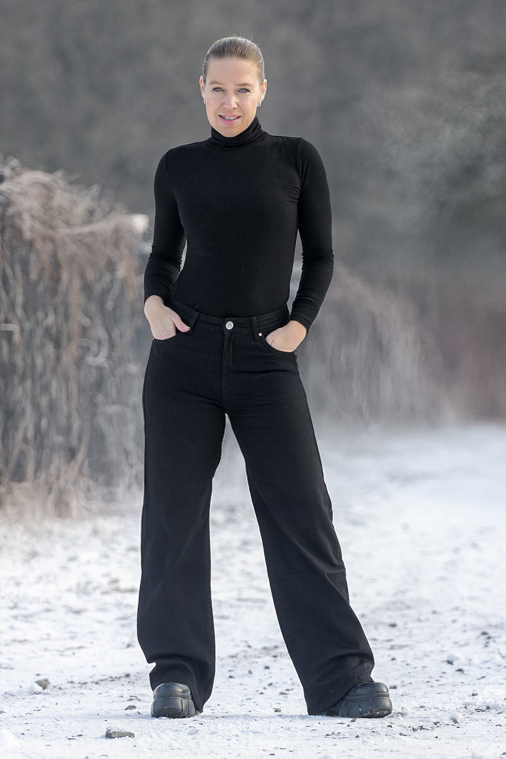 Široké džíny URBAN black potěší každou dámu, která má ráda rovný střih džínů a vyšší pas. Skvěle padnou všem typům postavy a dělají krásnou siluetu! Široké nohavice dodávají na stylu i pohodlí.
