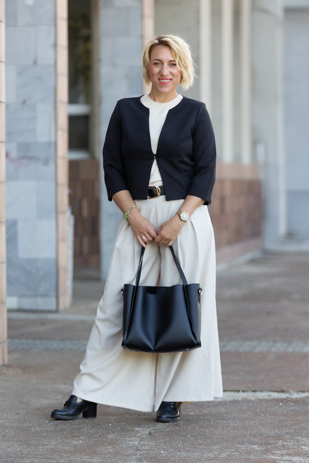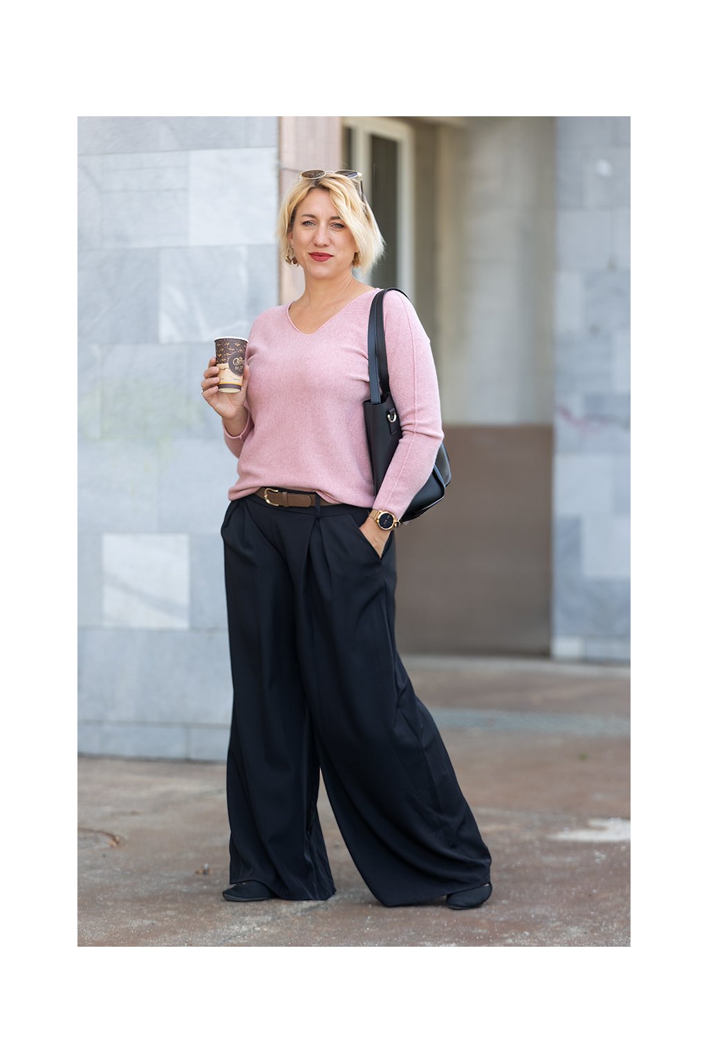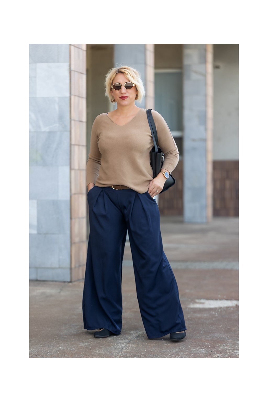 kalhoty střihem velmi elegantní, jen se musí před tím, než si je vezmu, vyžehlit, jinak mají úžasný slušivý a velmi pohodlný střih, v pase na gumu, s páskem, sama sobě sobě se v nich líbím :)) už na Vaše stránky odkazuji svoje kolegyně v práci..