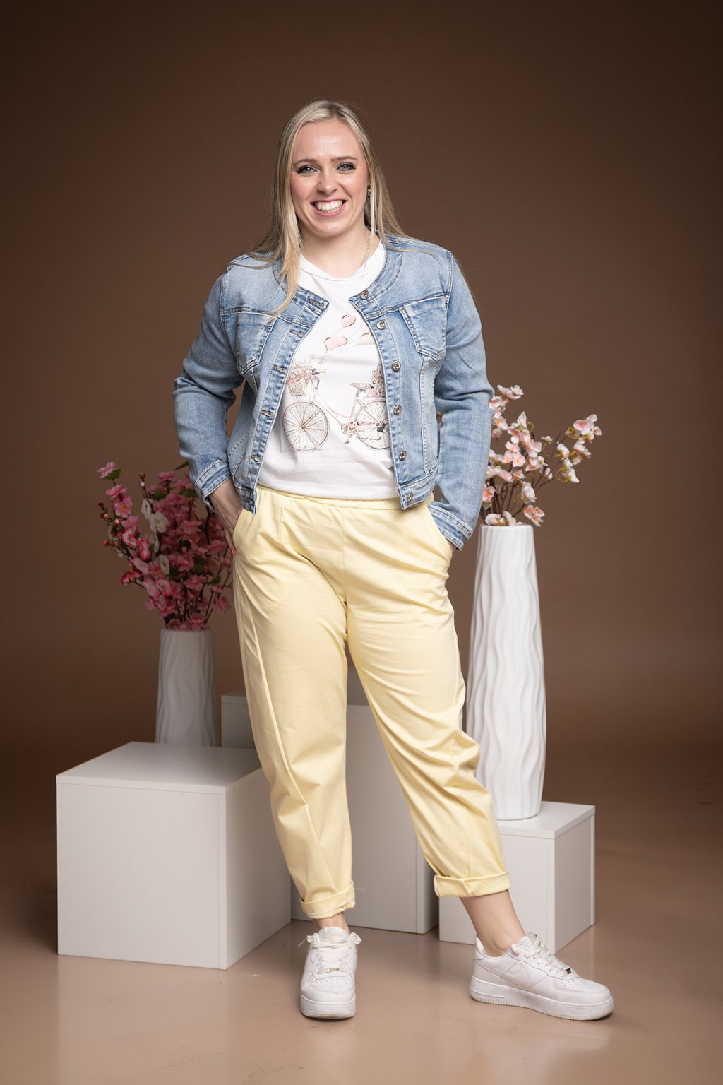 Teplákové kalhoty LENY jsme si doslova zamilovaly! Zkusíte a jedny Vám nebudou stačit, perfektní střih, v pase guma, neokoukané a přitom krásně provedené tepláky, které vypadají jako kalhoty. V nabídce v několika barvách a nejlépe sednou na velikost S až menší L. Modelka měří 176 cm a běžně nosí velikost M.