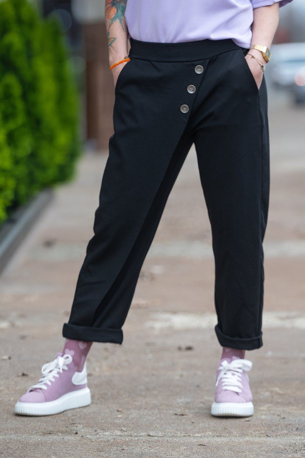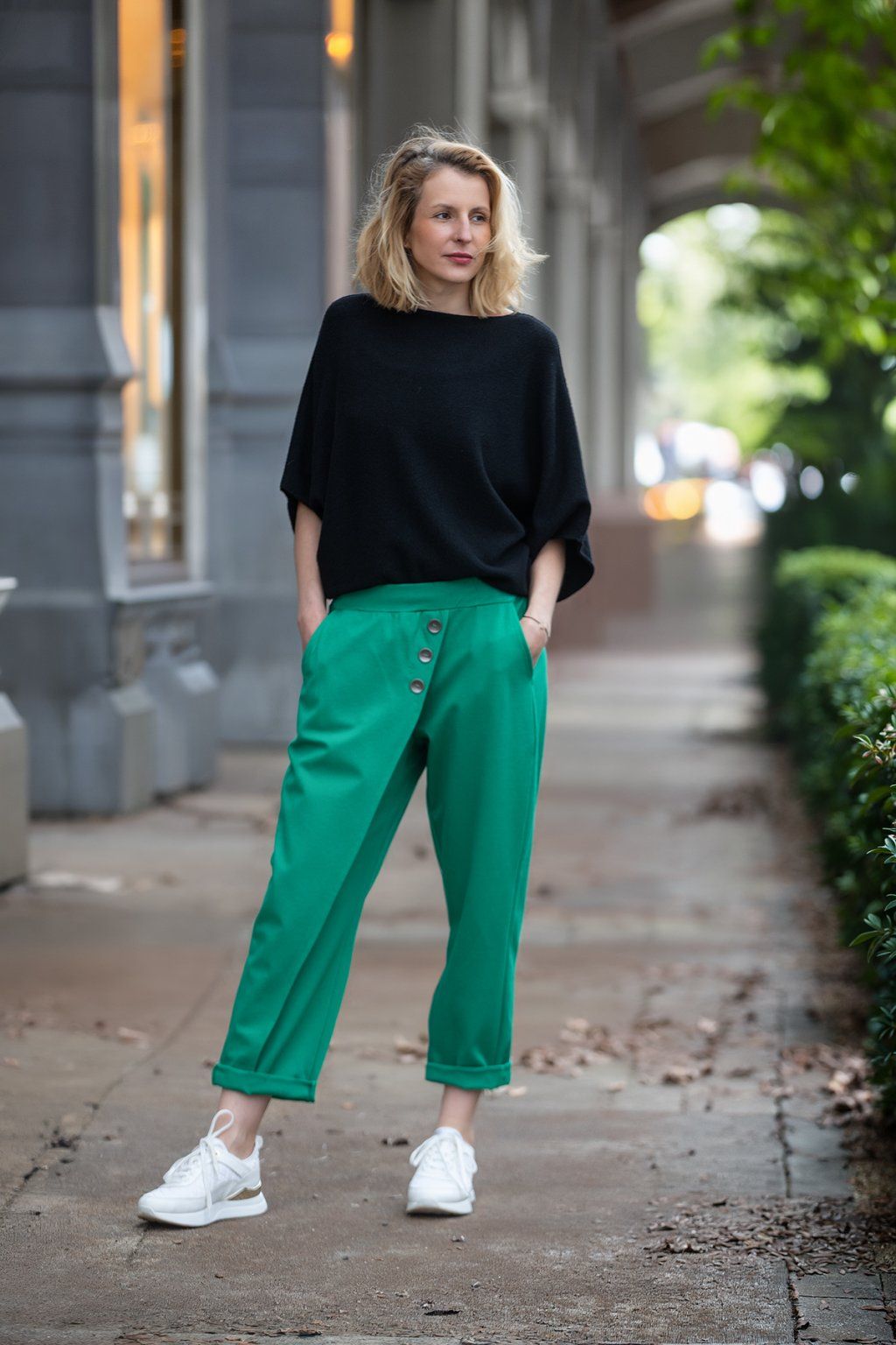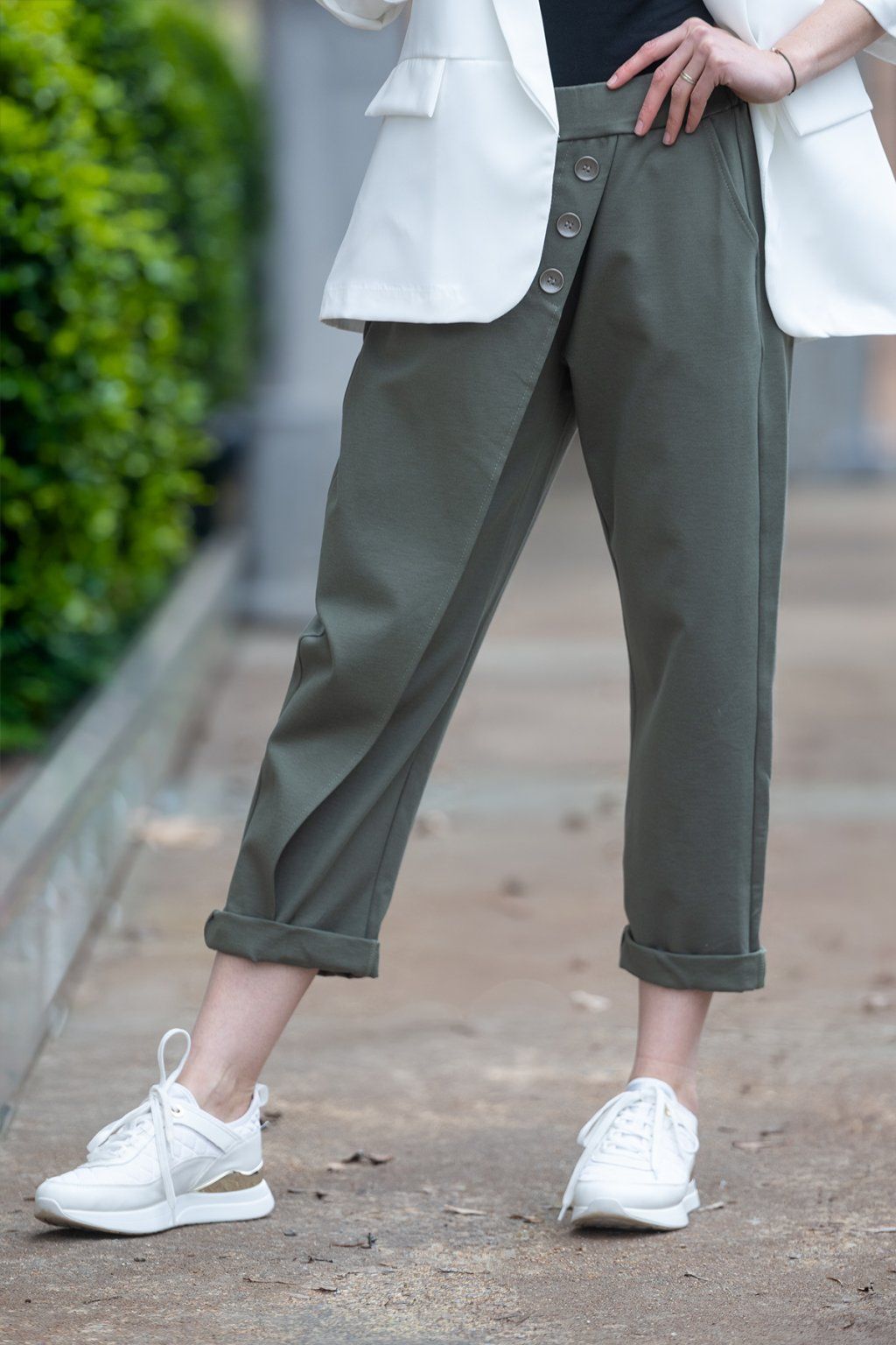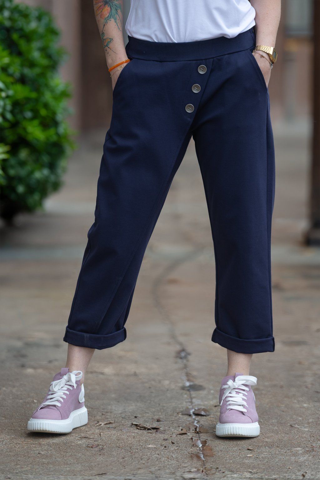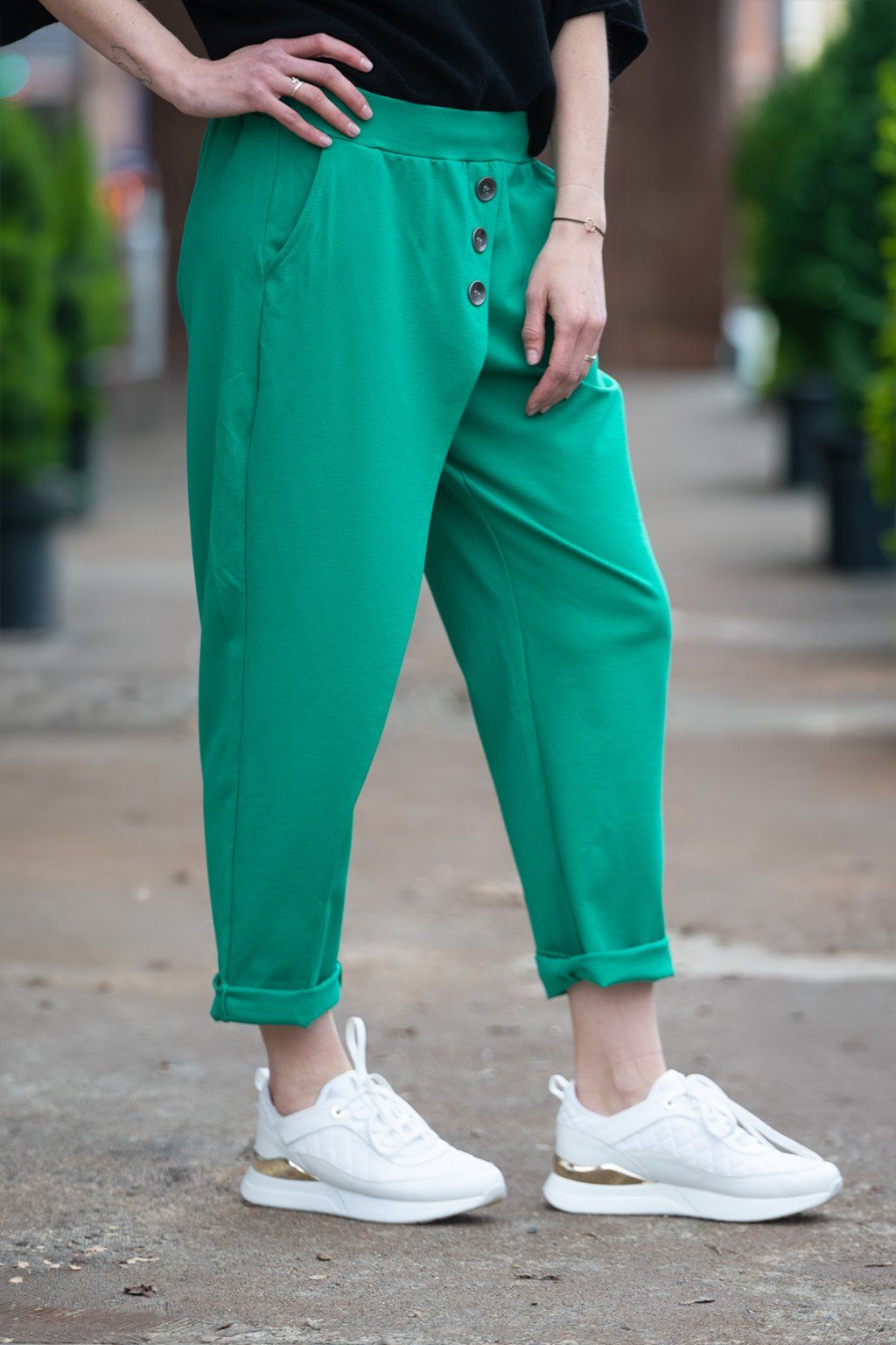 Nejprve jsem si koupila v olivově zelené, spíš na zkoušku, protože měřím 154cm, velikost 40 někdy 42. A jsou úplně boží, krásně sedí, dají se "zkrátit" ohrnutím a nic jim to neubere na kráse. Tak jsem dokoupila ještě černé. Naprostá spokojenost.