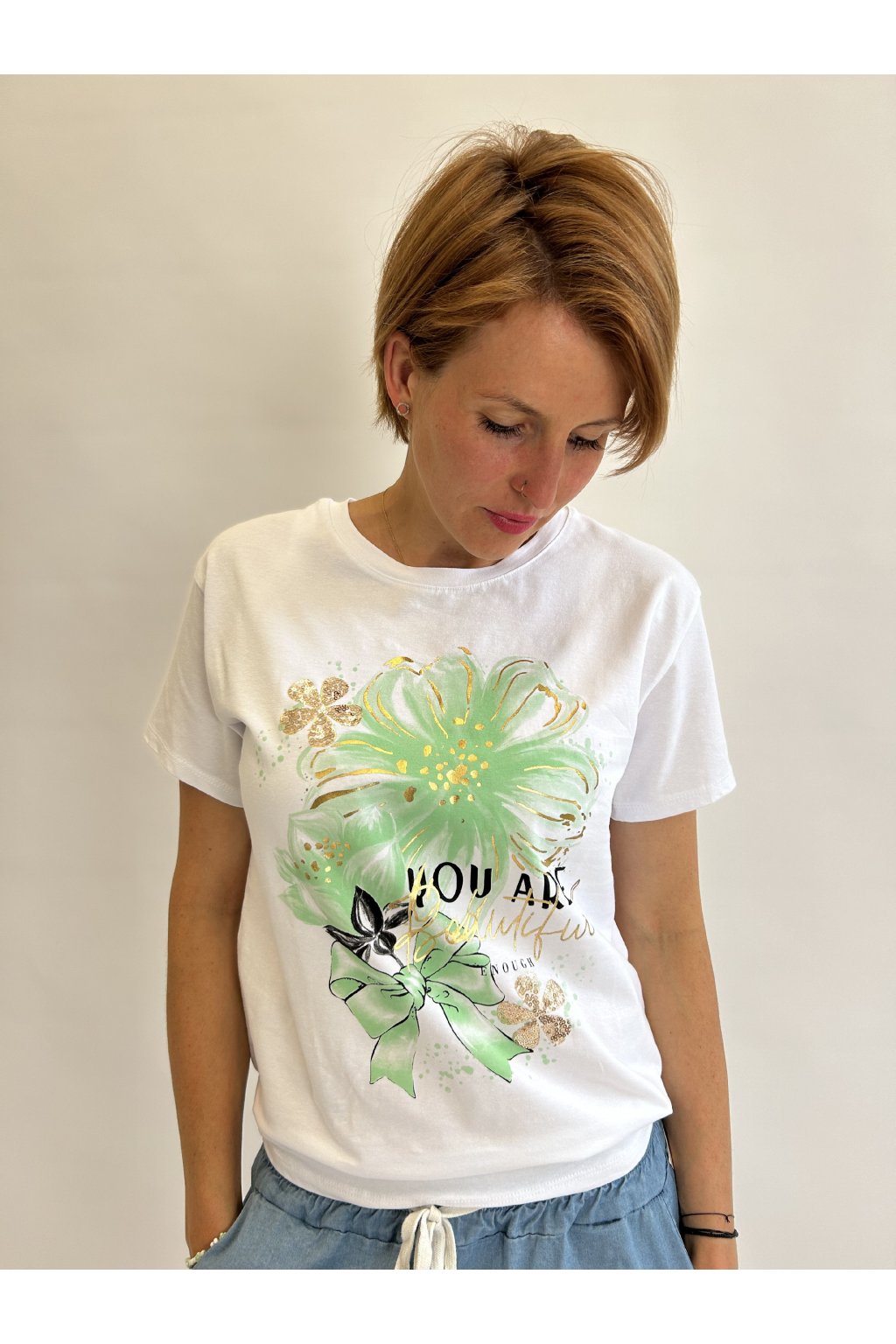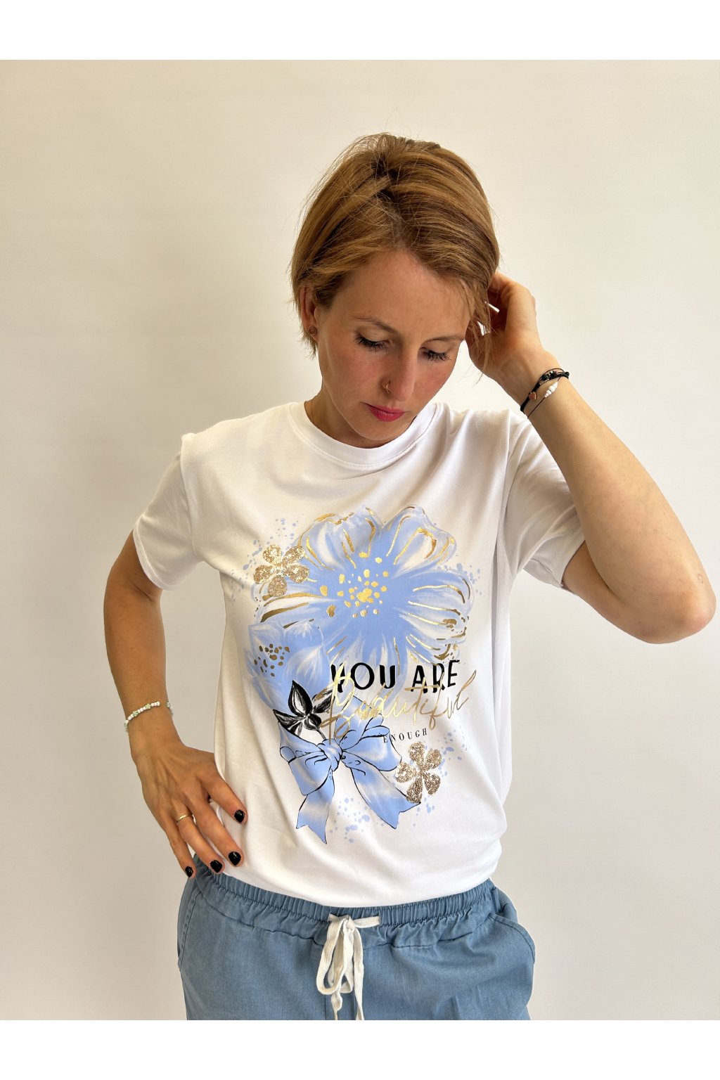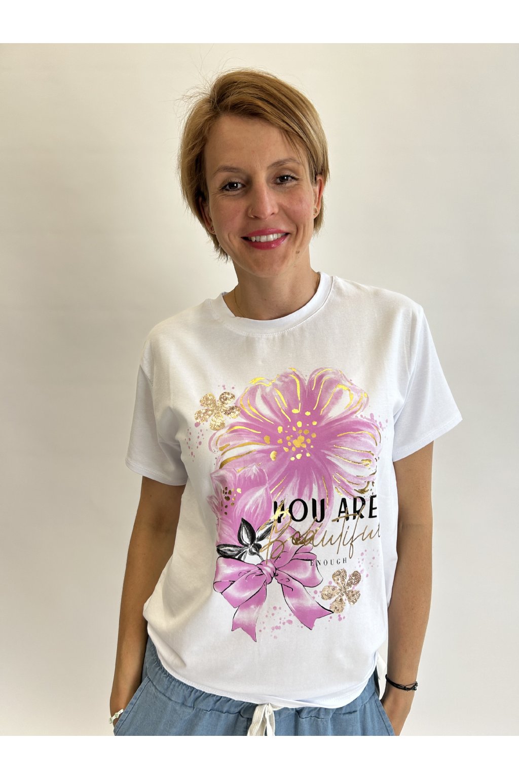 Jednoduché, kvalitní tričko s potiskem, které svým motivem zaujme každého. Klasické bílé tričko, které potřebuje mít v šatníku každá z nás. Příjemný materiál a velikostně nejlépe sedne na M-XL. Už jen džíny k tomu a outfit je vyladěn.