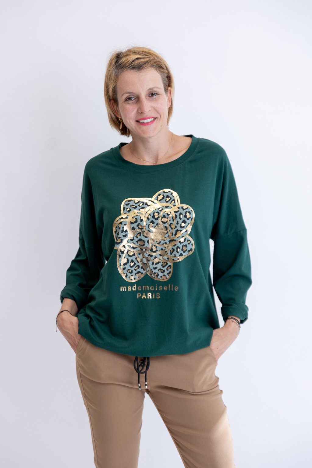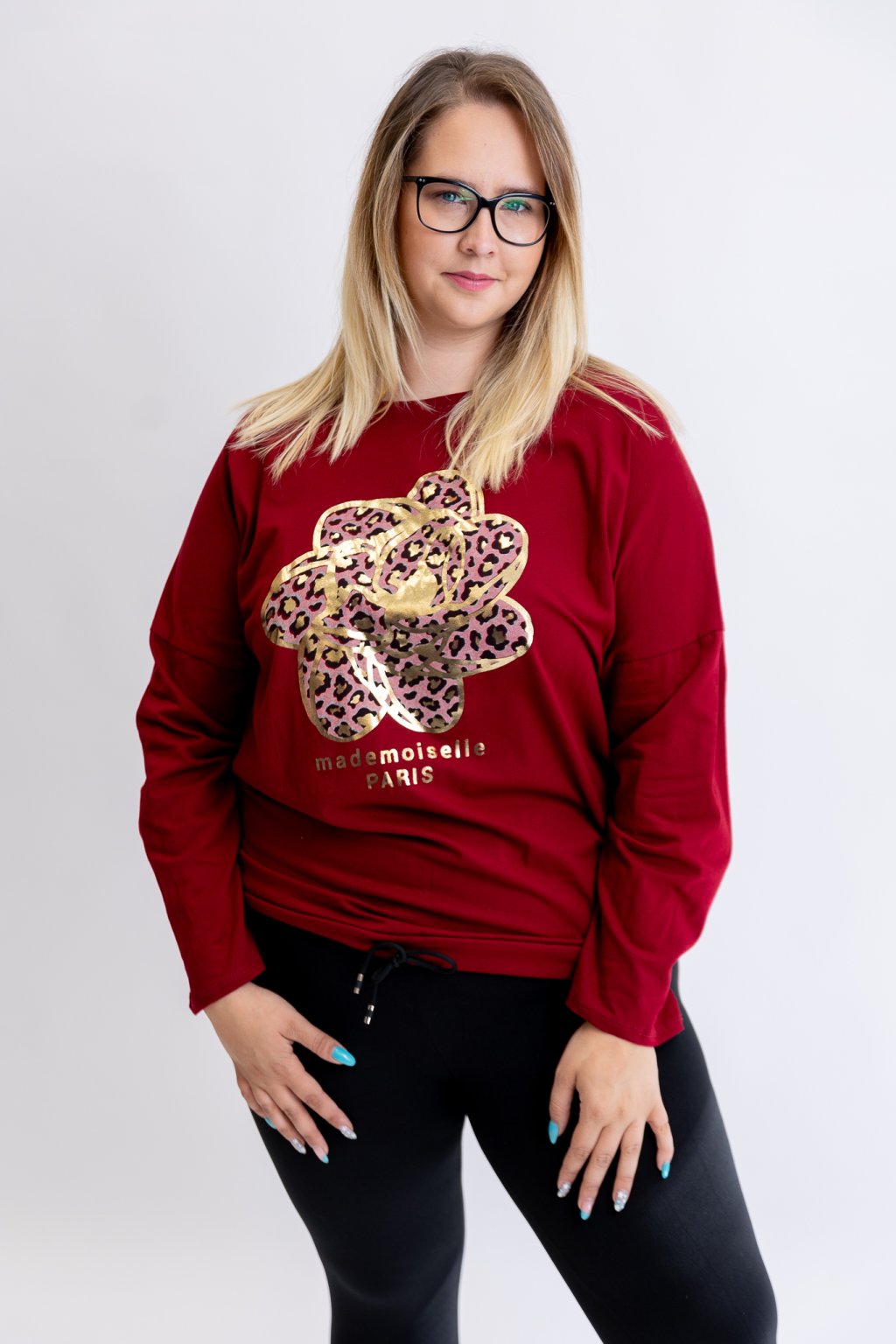 Tričko MARLENE tě osloví nejen svým příjemným materiálem, ale také krásným metalickým potiskem ve tvaru květiny. Tričko má dlouhý rukáv a dole ho lze stáhnout šňůrkou. Nejlépe sedí velikostem L-2XL. Podrobnější rozměry nalezneš v popisku. Máme ho u nás ve třech barvách.