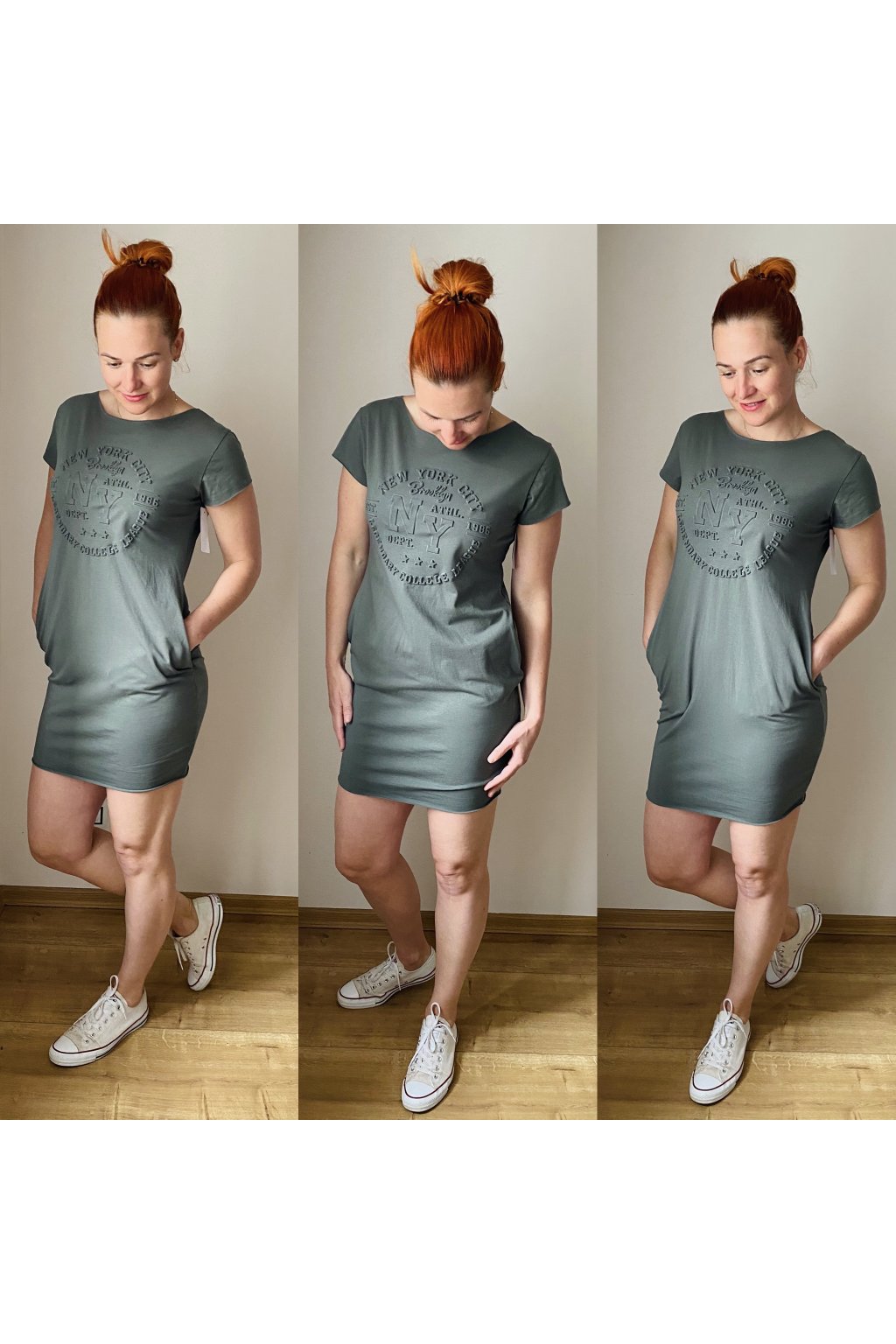 Trikové šaty s kapsami, extra pohodlné, pružné. Velikost UNI, sednou na velikost S, M a menší L. Foceno na postavě 176 cm a 72 kg. Ve 5 barvách.