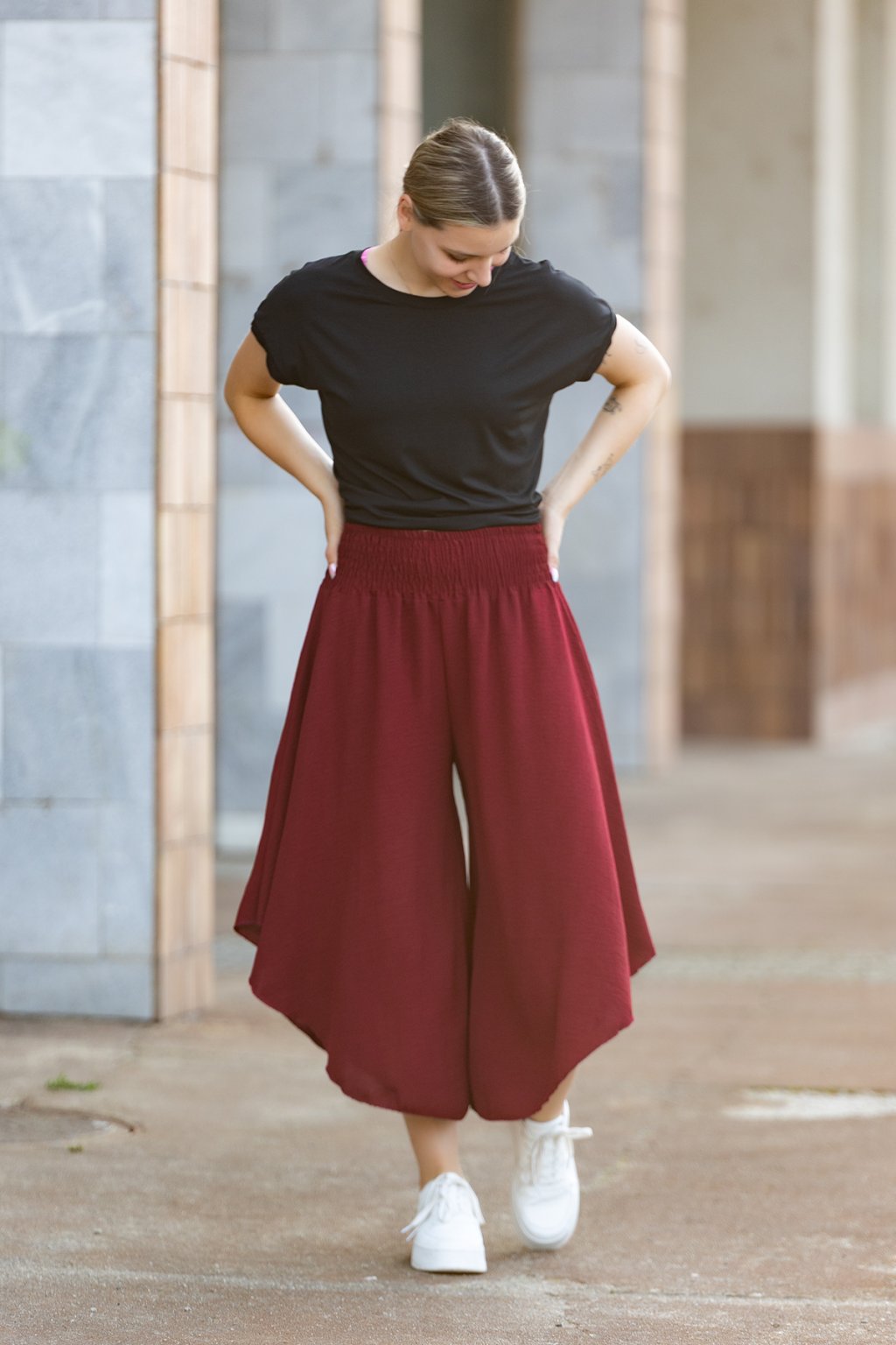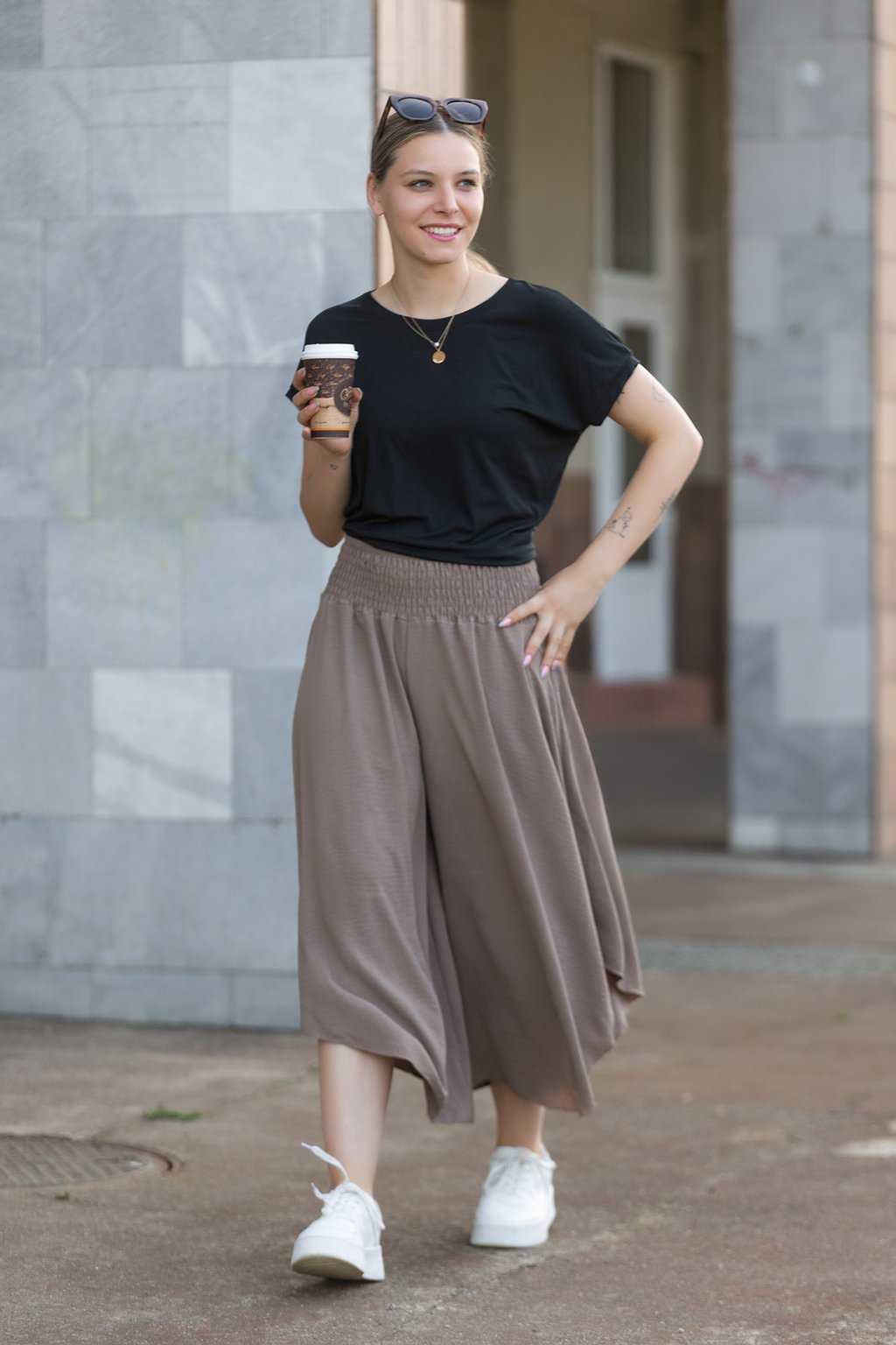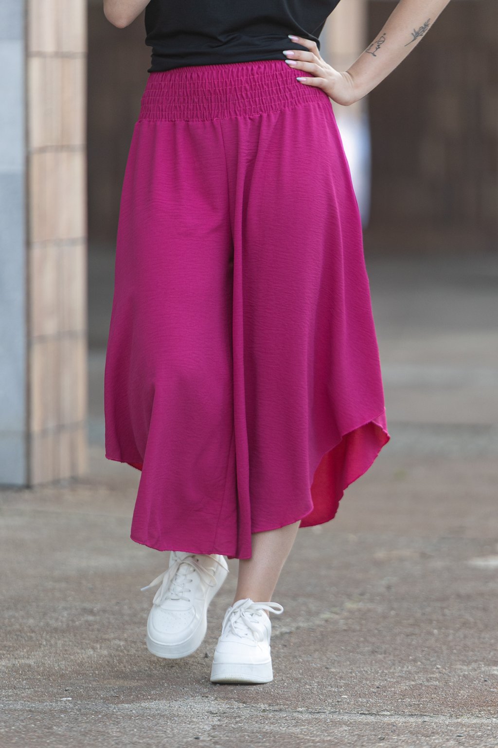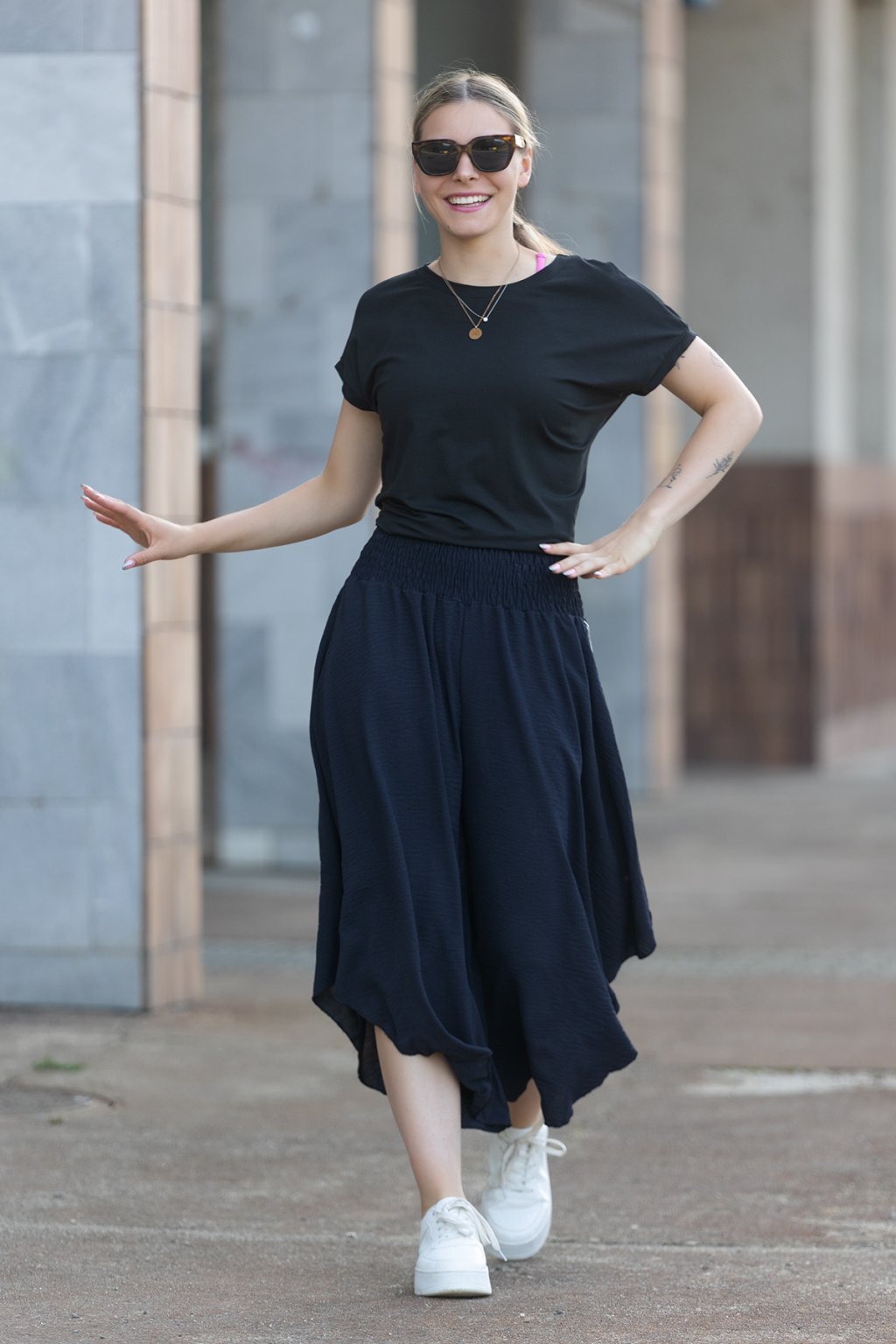 Po krátké pauze se tahle láska všech šatníků opět vrací! Kalhotová sukně CANDY má vysoký a pružný pas, je rafinovaně střižená a hlavně vypadá božsky. Kalhotová sukně je nabídce v několika barvách a velikostně nejlépe sedne na M až 2XL. V nabídce máme také zkrácenou velikost, která je označena M až 2XL short a hezky sedne i dámám menšího vzrůstu.