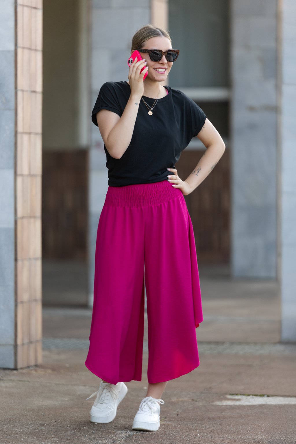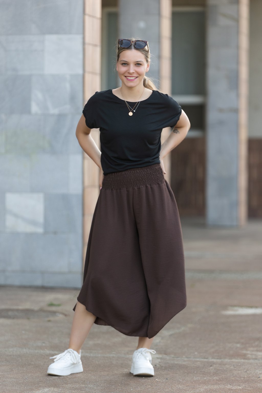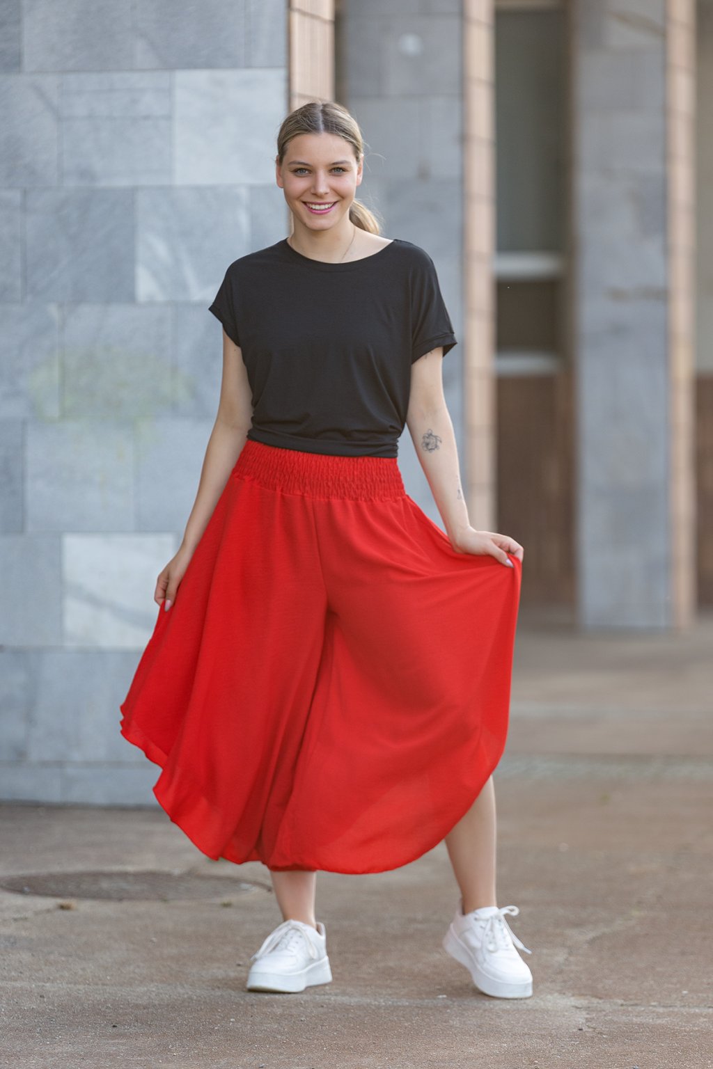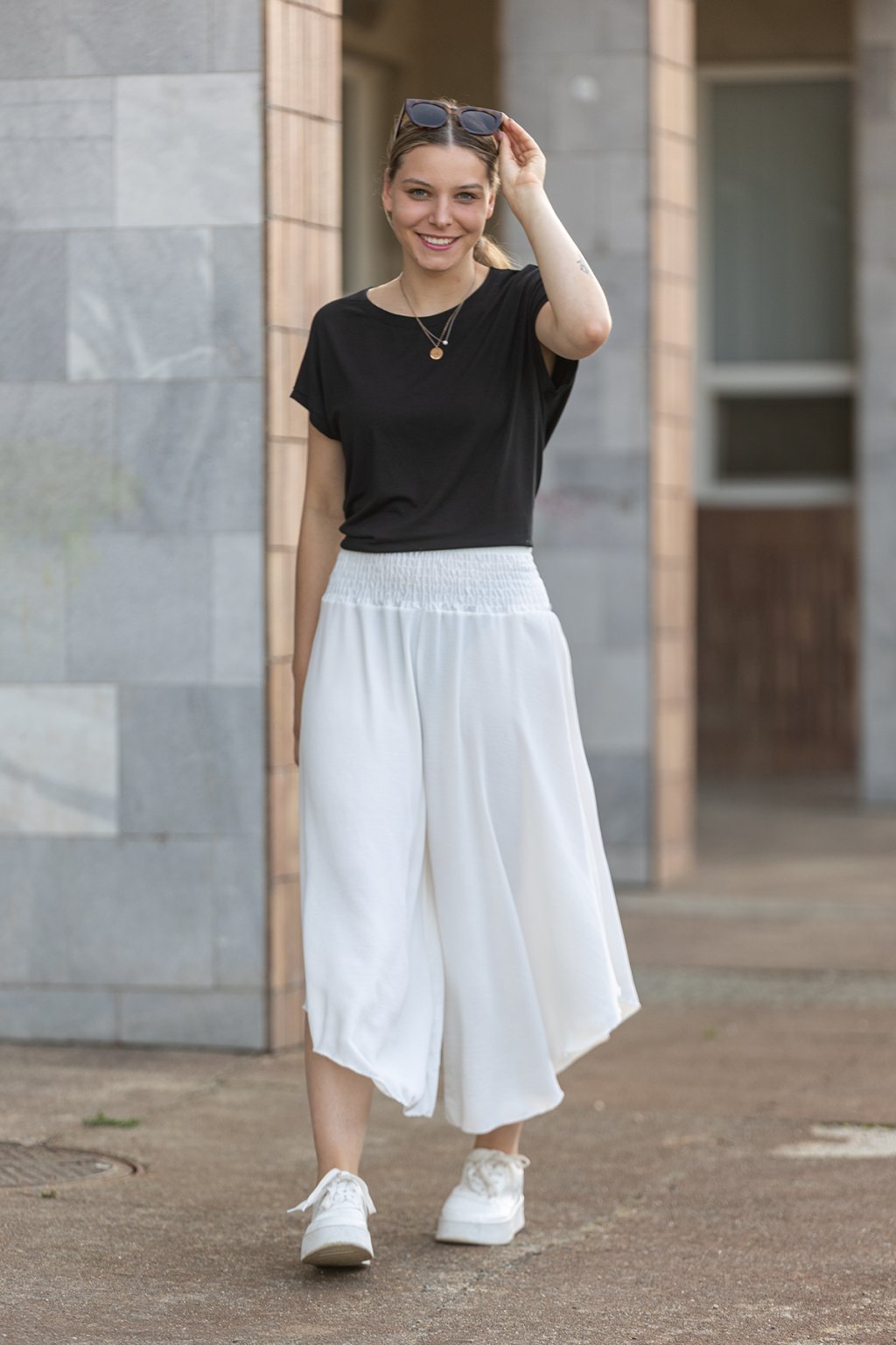 Po krátké pauze se tahle láska všech šatníků opět vrací! Kalhotová sukně CANDY má vysoký a pružný pas, je rafinovaně střižená a hlavně vypadá božsky. Kalhotová sukně je nabídce v několika barvách a velikostně nejlépe sedne na M až 2XL. V nabídce máme také zkrácenou velikost, která je označena M až 2XL short a hezky sedne i dámám menšího vzrůstu.
